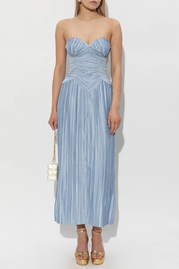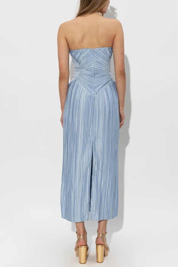Gefertigt aus hochwertigem Polyester mit dezentem Satin-Glanz, strahlt die hellblaue Kreation Noblesse und eine moderne Interpretation klassischer Eleganz aus. Der Verzicht auf sichtbare Verzierungen oder Logos auf der Front unterstreicht ihren raffinierten, minimalistischen Charakter. Perfekte Verarbeitung und subtile Raffungen machen dieses Kleid zu einer einzigartigen Empfehlung für Liebhaberinnen anspruchsvoller Mode.