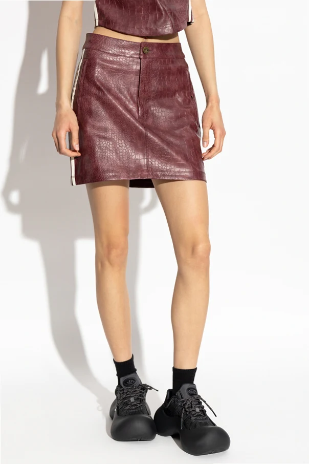 Der kurze Rock der Marke Adidas Originals verkörpert die Quintessenz zeitlosen Stils in einer modernen Interpretation. Er begeistert durch seine schlichte Mini-Silhouette und die exzellente Verarbeitung aus hochwertigem Material mit Kroko-Leder-Optik . Das tiefe, bordeauxrote Farbschema verleiht dem Gesamtbild außergewöhnliche Eleganz und unterstreicht den anspruchsvollen Charakter des Kleidungsstücks.