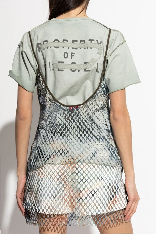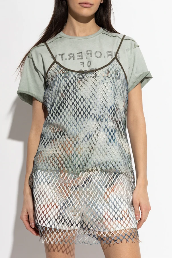 Das transparente Kleid ‘KASY-UTLT’ der Marke Diesel besticht durch subtile Eleganz und künstlerische Raffinesse. Der leicht taillierte, gerade Mini-Schnitt mit zarten Trägern unterstreicht die sinnliche Silhouette. Durch das grobmaschige, luftige Material und das sorgfältig ausgewählte Mesh-Gewebe erhält das Kleid außergewöhnliche Leichtigkeit und begeistert mit einem schwebenden Transparenzeffekt.