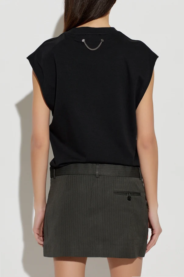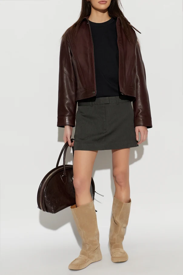 Das Kleid aus kombinierten Materialien von Acne Studios ist ein Synonym für zeitgenössische Eleganz und raffinierten Minimalismus. Es besticht durch eine schlichte, aber äußerst effektvolle Form – das obere, schwarze Teil mit glatter Textur, geschlossenem Ausschnitt und markant betonten Schulterpartien im Muscle-Tee-Stil harmoniert perfekt mit dem unteren, von einem klassischen Minirock inspirierten Teil.