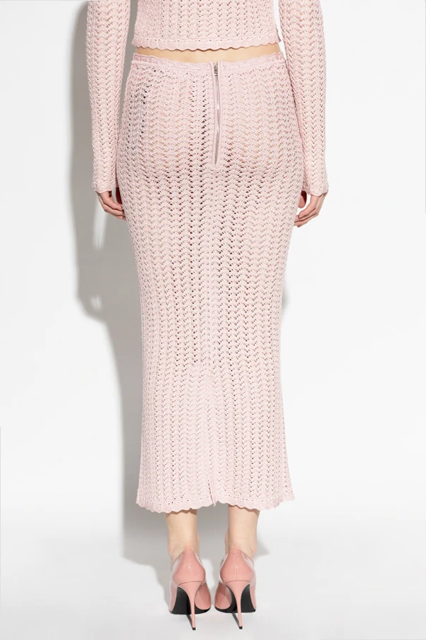 Der pastellige, hellrosafarbene Ton verleiht dem Rock Frische und Raffinesse und unterstreicht seinen einzigartigen Charakter. Zarte, dekorative Abschlüsse sowie die dezent auf Taillenhöhe eingestickten Initialen des Designers schaffen ein raffiniertes Ganzes. Für höchsten Tragekomfort sorgt ein versteckter Reißverschluss auf der Rückseite , der eine perfekte Passform bei gleichzeitig elegantem Erscheinungsbild gewährleistet.