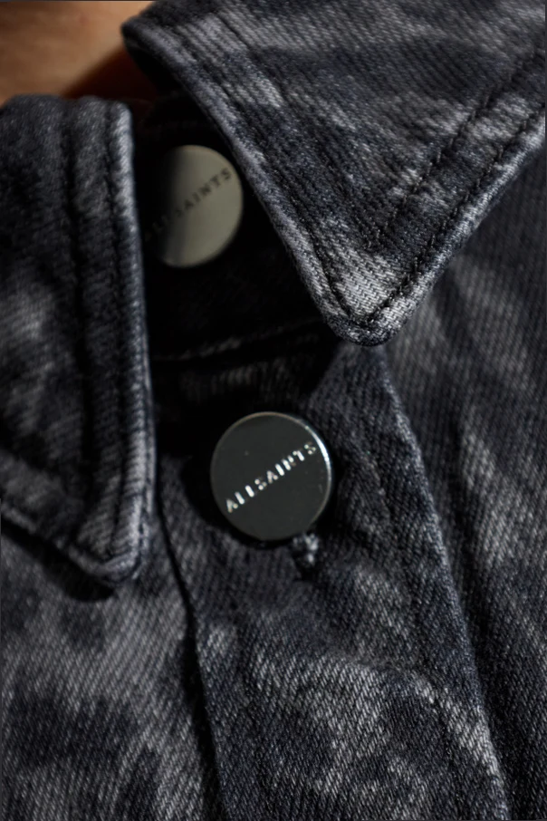 Der rohe Saum betont den modernen, leicht rockigen Charakter, während die Metallknöpfe mit dezentem AllSaints-Logo markante Akzente setzen. Aufgesetzte Taschen und durchdachte Nähte vervollständigen das Design und machen diese Jacke zu einem einzigartigen Vorschlag für jeden Anlass.