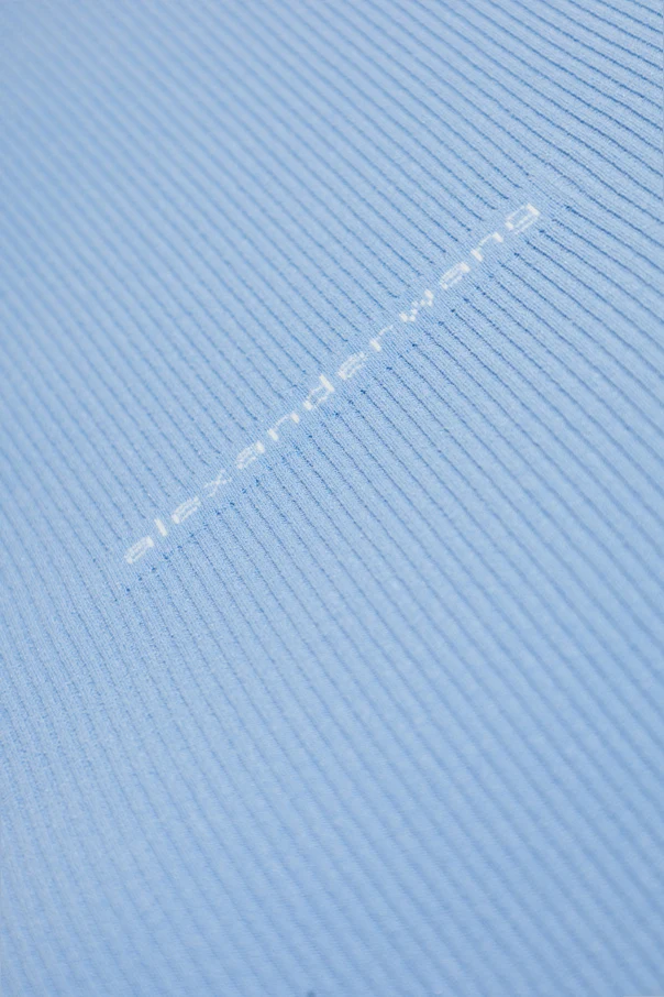 Das Kleid mit dem Logo des Designs von Alexander Wang ist die Quintessenz moderner Eleganz – geschaffen für Frauen, die raffinierte Details schätzen. Der hellblaue gerippte Strickstoff umschmeichelt die Silhouette, betont ihre Vorzüge und verleiht dem Ganzen einen exklusiven, sportlichen Charakter. Der figurbetonte Mini-Schnitt mit kurzem Ärmel und dezent erhöhtem Kragen harmoniert perfekt mit dem minimalistischen Design.