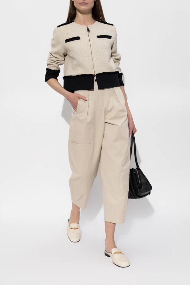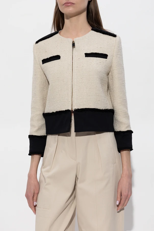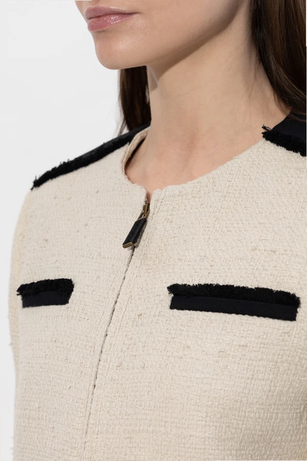 Blazer „Pagaia” von Max Mara besticht durch raffinierte Eleganz und beeindruckt durch seine moderne Form. Der kurze, leicht oversized Schnitt mit markant akzentuierten Schultern und geraden Linien schafft eine subtile Harmonie zwischen Klassik und zeitgenössischem Stil. Beiger Tweed mit einer ausgeprägten Struktur, inspiriert vom edlen Bouclé, unterstreicht den exklusiven Charakter dieses Modells.