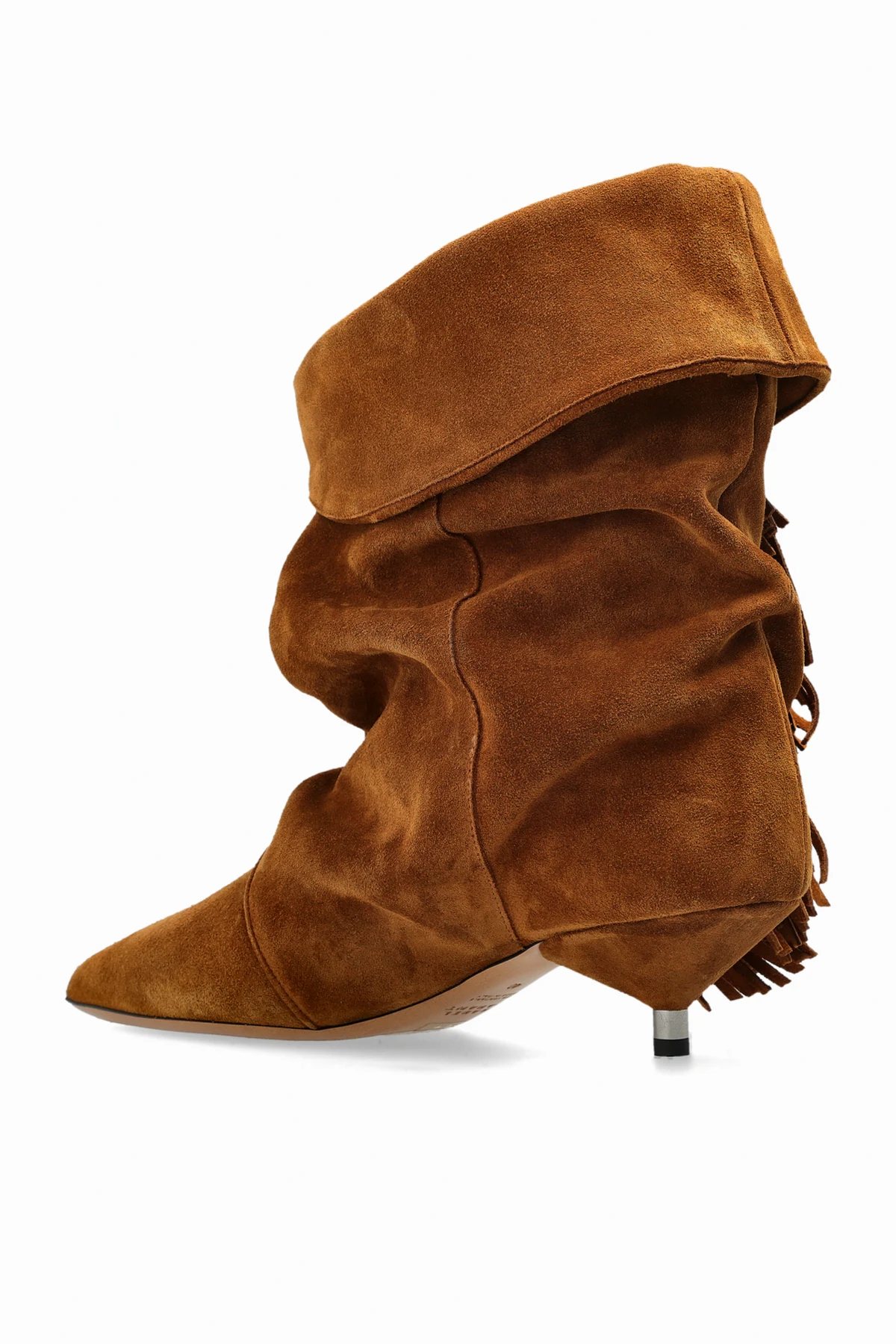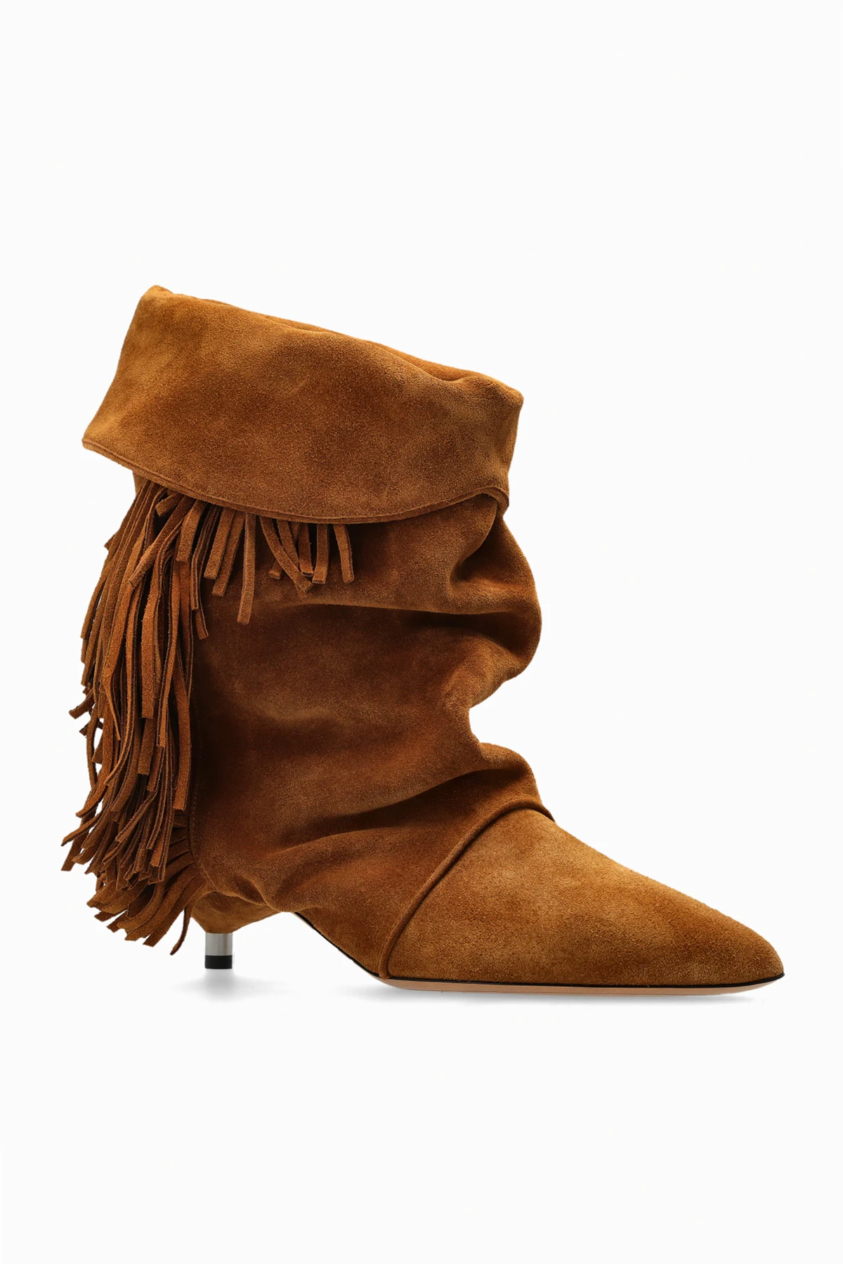 Wir präsentieren die Stiefeletten "Edrik" von der renommierten Designerin Isabel Marant , die die Quintessenz französischer Eleganz mit einem Hauch von lässigem Stil verkörpern. Diese braunen Stiefeletten, aus hochwertigem Wildleder gefertigt, bestechen durch ihr raffiniertes Aussehen und ihre Funktionalität.