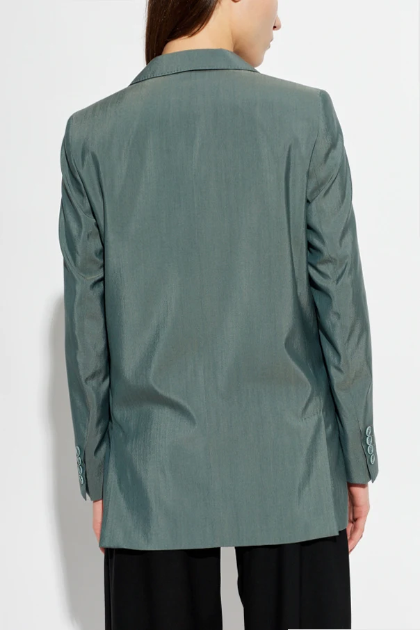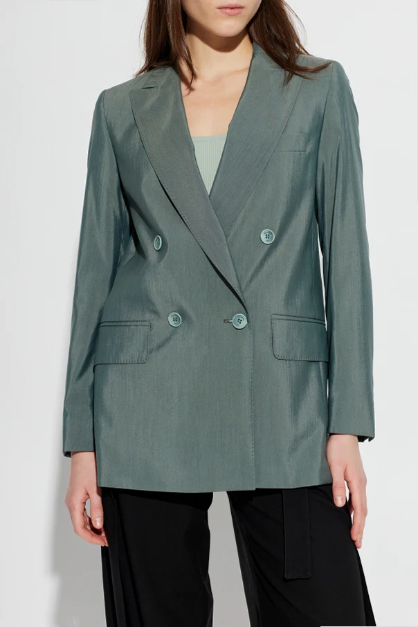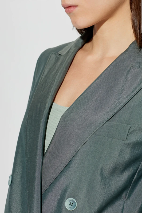 Das Sakko Albata von Max Mara verkörpert moderne Eleganz in einem edlen Grünton. Es zeichnet sich durch eine glatte Struktur ohne Muster aus und besteht aus einem dezent glänzenden Stoff, der die Handwerkskunst und die Hochwertigkeit der verwendeten Materialien – einer Mischung aus Wolle und Seide – unterstreicht. Der klassische, verlängerte Schnitt im leicht oversize Stil mit betonten Schultern und breiten, traditionellen Revers verleiht dem Sakko einen außergewöhnlich raffinierten Charakter.