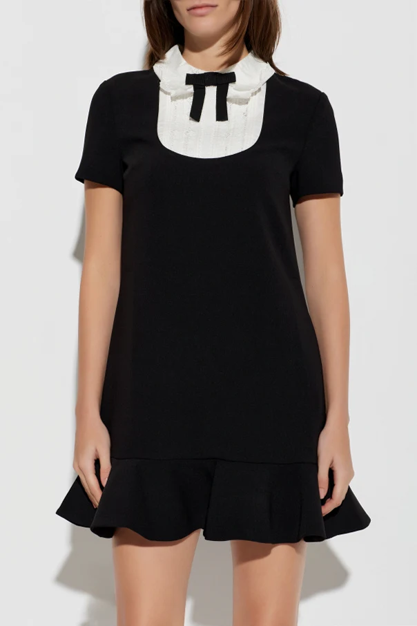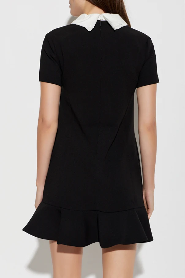 Das Kleid mit Rüschensaum von Self-Portrait ist die Verkörperung raffinierter Minimalistik. Der schlichte, leicht ausgestellte A-Linien-Schnitt sowie die kurze Länge betonen dezent die feminine Silhouette und verleihen dem Look eine mädchenhafte Anmut. Der schwarze Farbton, der durch einen kontrastierenden, weißen Akzent am Ausschnitt aufgelockert wird, sorgt für Harmonie und zeitlose Eleganz.
