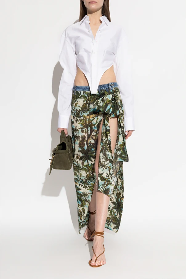 Rock mit asymmetrischem Schnitt ist ein außergewöhnlicher Vorschlag der renommierten Marke Dsquared2, der für Menschen geschaffen wurde, die raffinierte Eleganz und ausgefallene Details schätzen. Dieses Modell zeichnet sich durch eine verlängerte Linie mit einem hohen, markanten Schlitz auf der Vorderseite aus, der die Silhouette auf subtile Weise zur Geltung bringt.