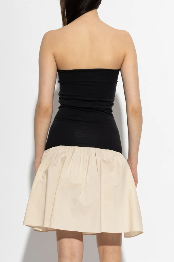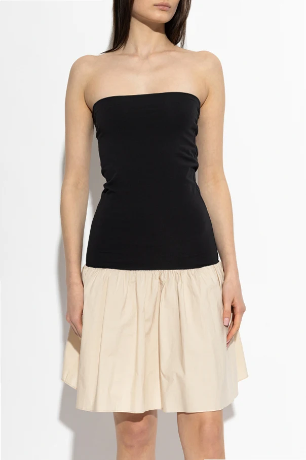 Kleid „Marcia” von By Malene Birger ist die Quintessenz moderner Eleganz und subtilen Minimalismus. Das Minikleid besticht durch ein faszinierendes Zusammenspiel der Schnitte – das glatte, elastische Oberteil im Bandage-Stil in Schwarz harmoniert perfekt mit dem ausgestellten, gerafften Rock in einem dominierenden Beigeton . Dieses präzise Spiel mit Formen und Farben unterstreicht den raffinierten Stil und die zeitlose Weiblichkeit.