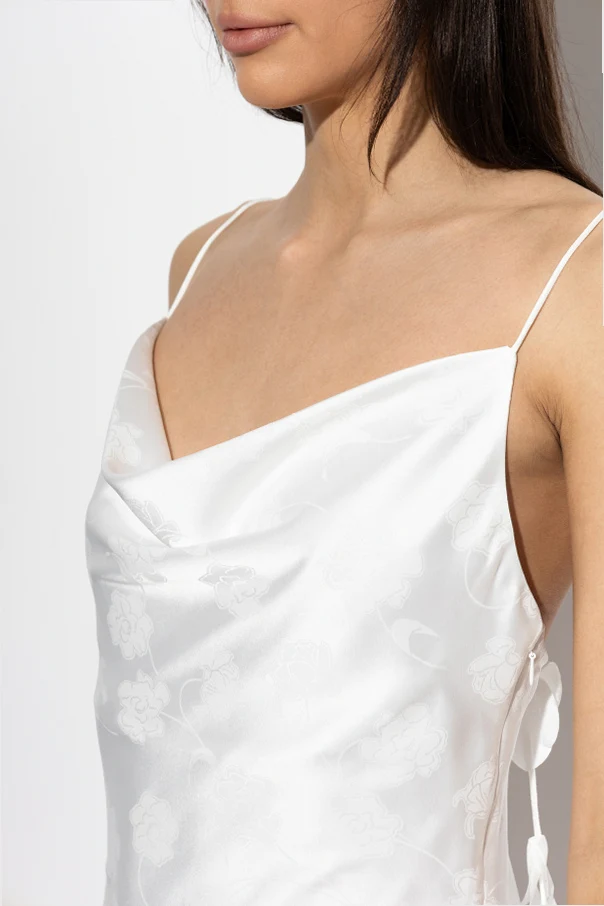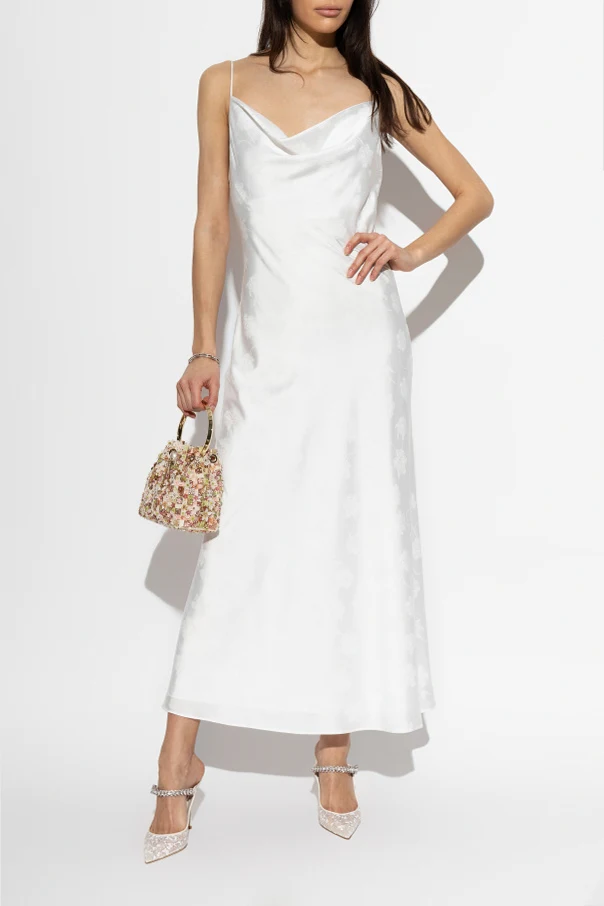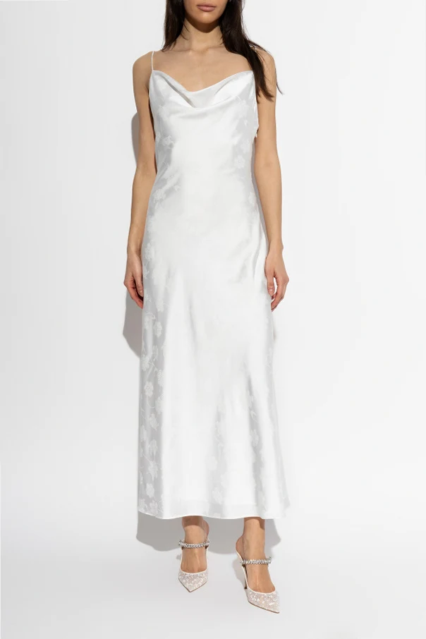 Kleid mit Blumenmuster der Marke ROTATE ist ein Synonym für zeitlose Eleganz, in der raffinierte Linienführung auf subtile Sinnlichkeit trifft. Das Maxikleid aus weißem Satin mit ausdrucksvollem Glanz besticht durch seinen schlichten Schnitt und den sanft ausgestellten Saum, der die Silhouette dezent streckt.
