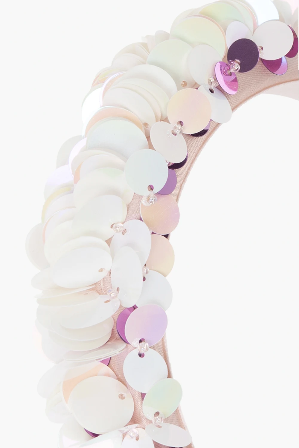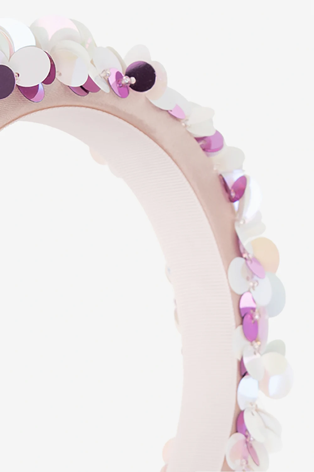 Light pink headband with a satin finish from Bonpoint. This item is decorated with round details in pink and white.