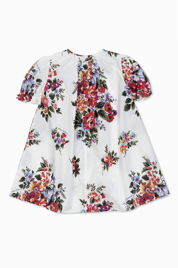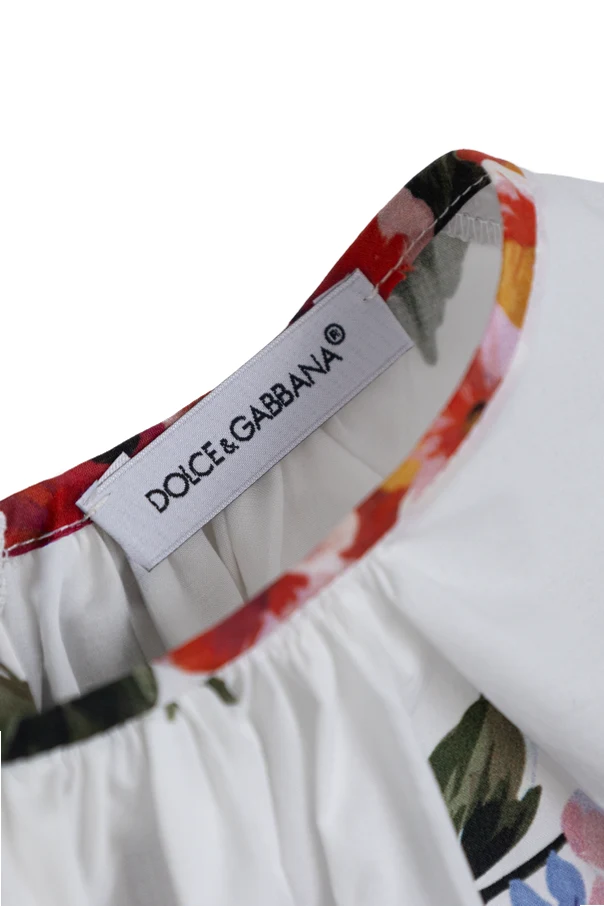 Das präsentierte Blumenkleid ist eine Hommage an kindliche Finesse und Raffinesse, signiert vom renommierten Modehaus Dolce & Gabbana Kids . Das weiße Gewebe bildet einen perfekten Hintergrund für die mehrfarbigen, floralen Akzente – Kompositionen aus Rot, Violett, Rosa und Gelb erhalten hier eine neue Dimension der Frische.