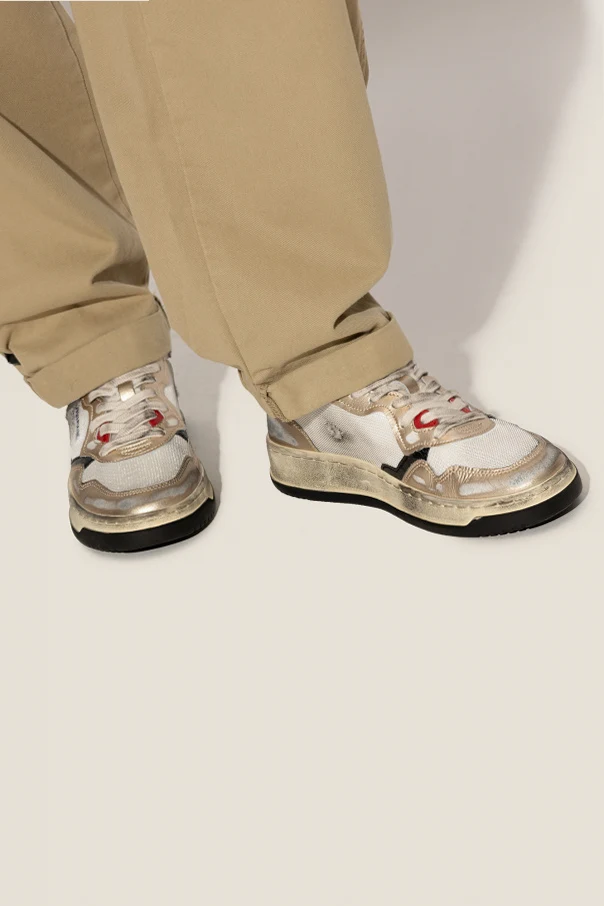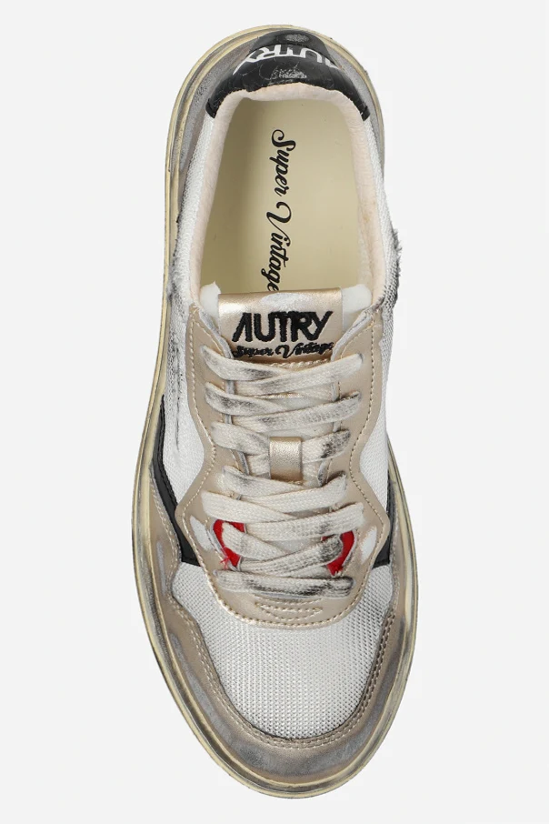 Gold-tone, white and black ‘AVLW’ sneakers from Autry. Crafted from fabric and leather with a vintage effect, this lace-up model sits on a black and cream rubber sole and showcases the brand's logo.