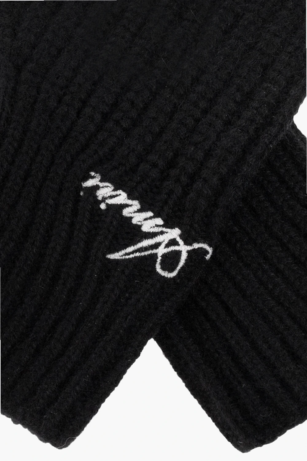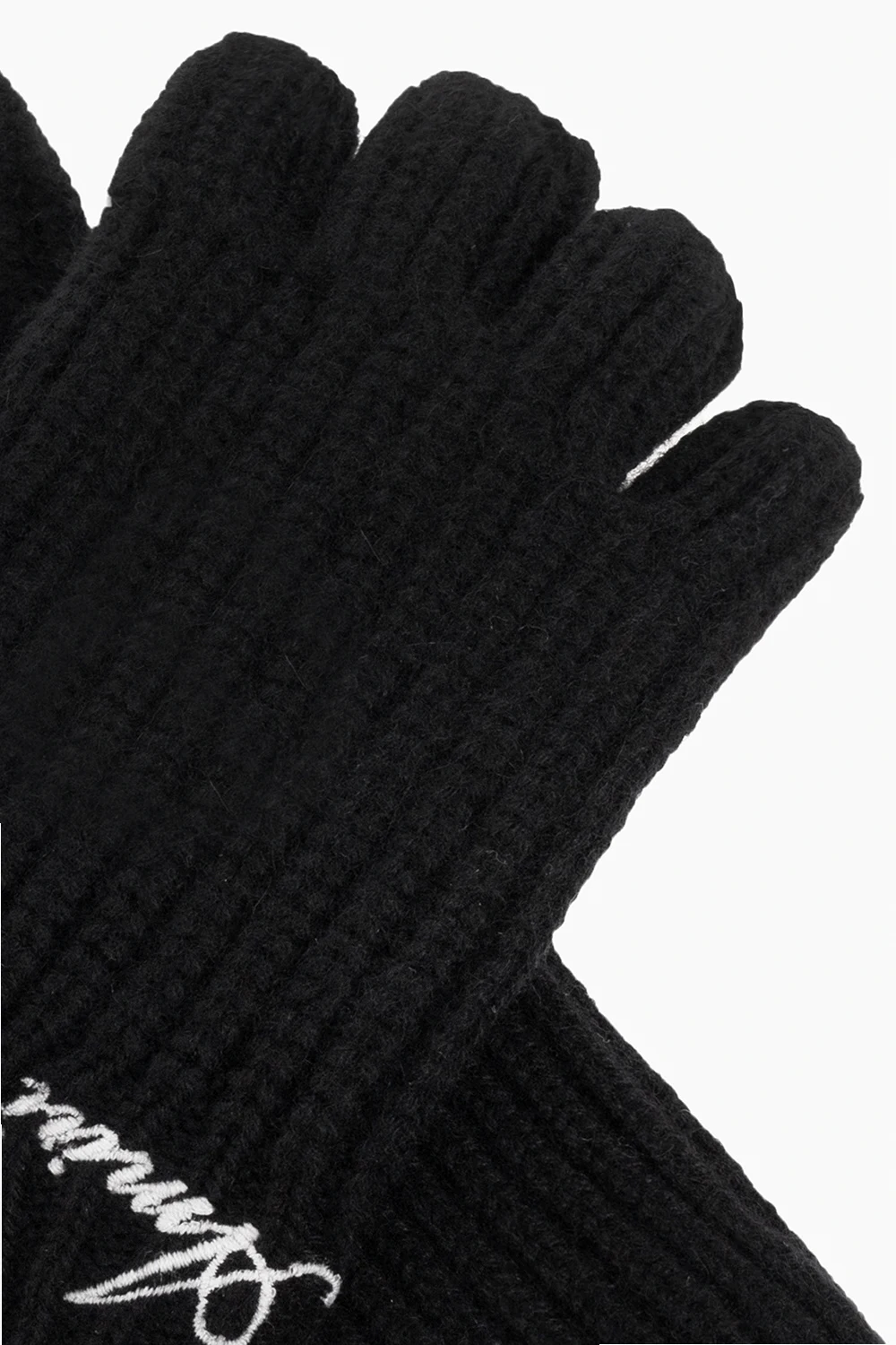 Black fingerless gloves from Amiri. Crafted from cashmere with a ribbed knit, this pair features white logo embroidery.