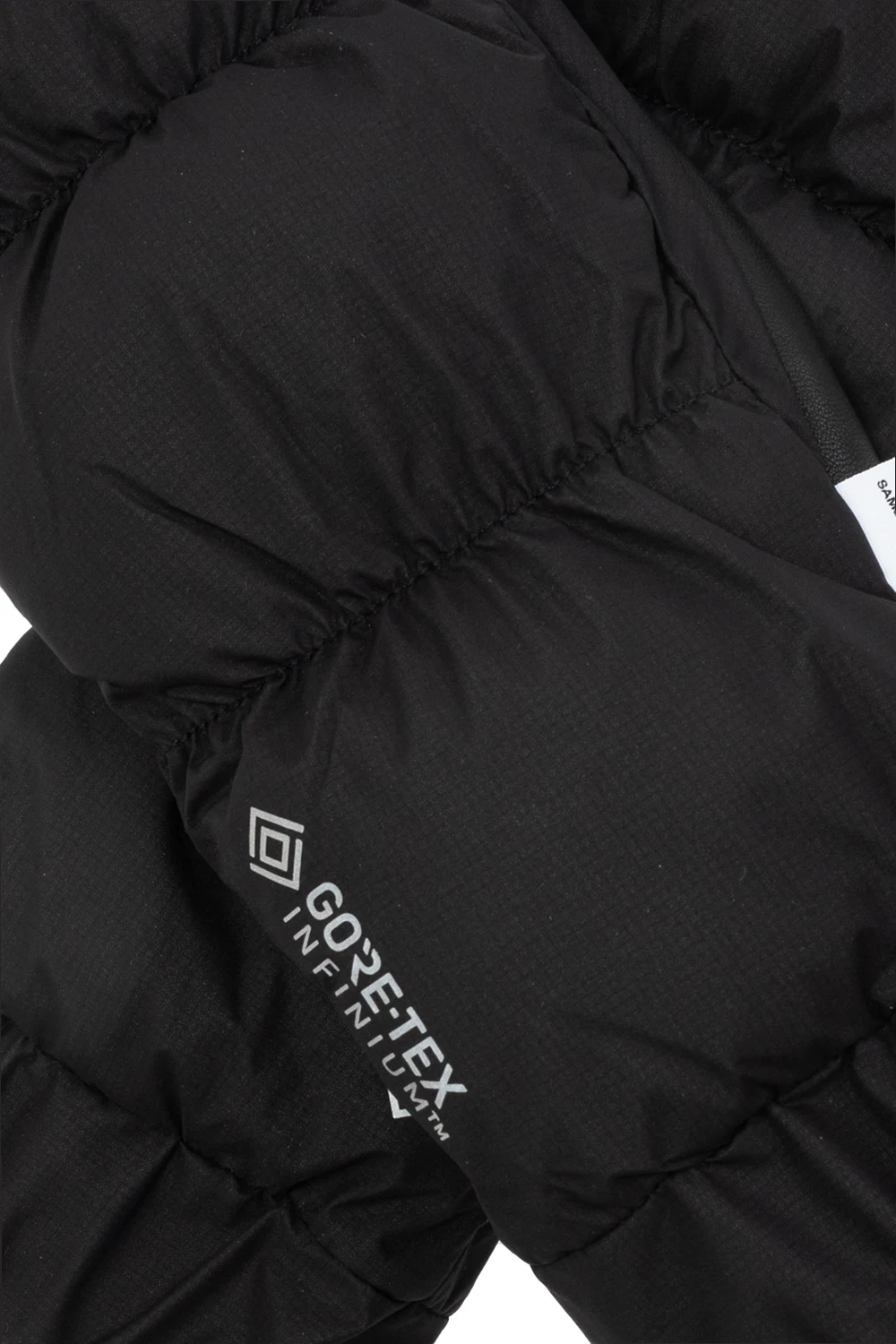 Black gloves from Samsoe Samsoe. Made of breathable, windproof GORE-TEX Infinium™ material, this pair features lamb leather trims.