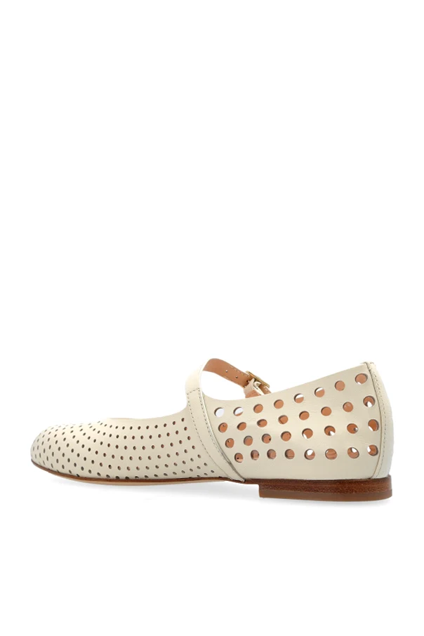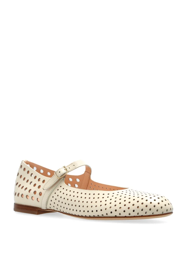 Die klassische Form der BALLET FLATS mit abgerundeter Spitze und einem Riemen mit Schnalle über dem Spann garantiert Stabilität und Komfort im täglichen Gebrauch. Die niedrige, flache Sohle aus feinem Leder macht diese BALLET FLATS ideal für jeden Anlass. Die dominierende cremefarbene Farbe verleiht ihnen Eleganz und Vielseitigkeit, was sie zu einer perfekten Ergänzung jeder Garderobe macht.