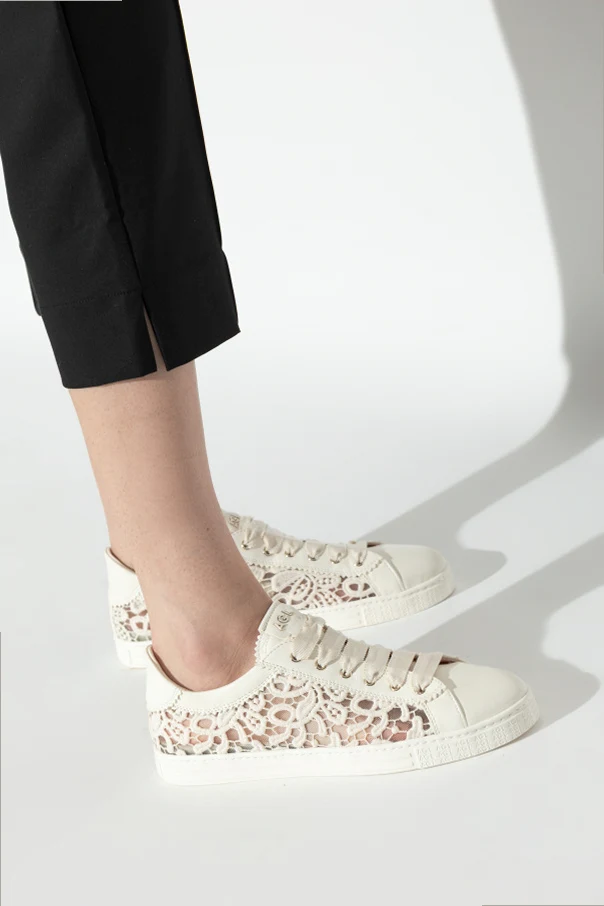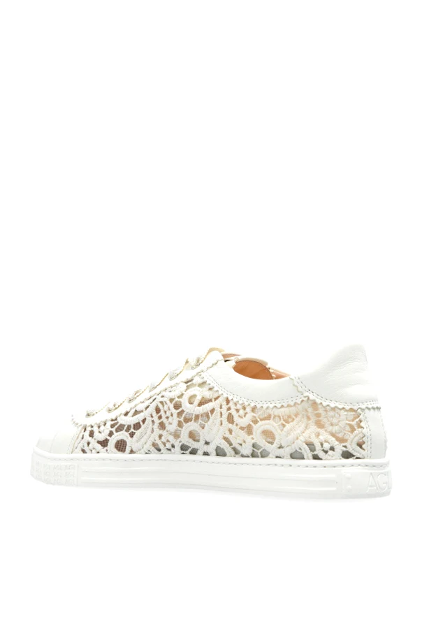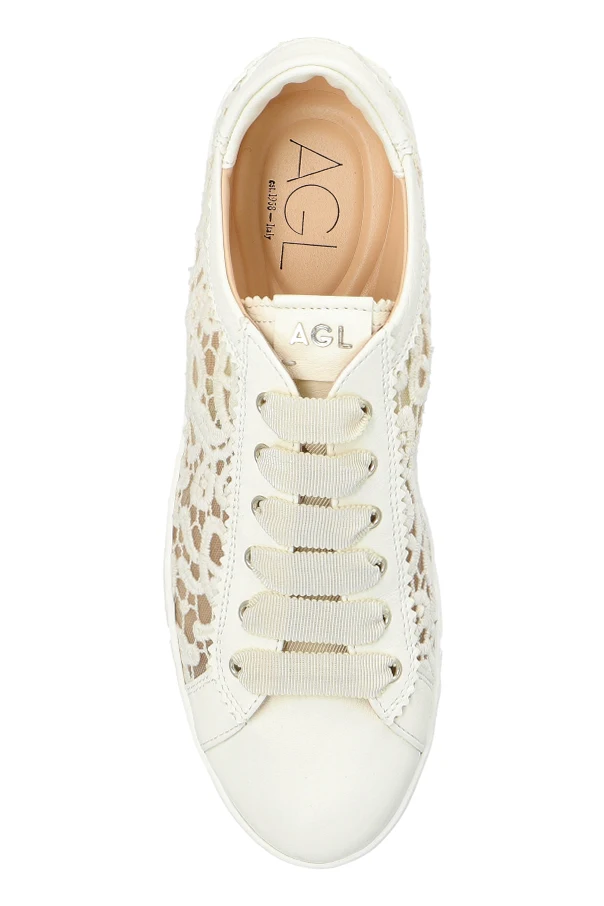 Wir präsentieren elegante SNEAKERS aus der exklusiven Kollektion der Marke AGL . Aus zarter Spitze gefertigt, strahlen sie Subtilität in einem cremigen Farbton aus und unterstreichen Raffinesse und Leichtigkeit. Der klassische Low-Top-Schnitt garantiert Komfort, während die solide weiße Gummisohle bei jedem Schritt Stabilität verleiht.