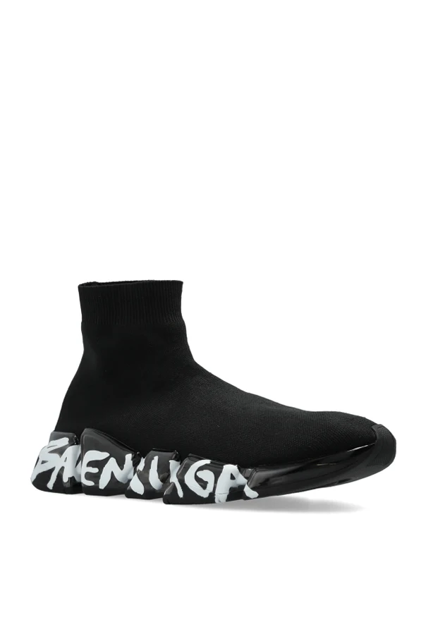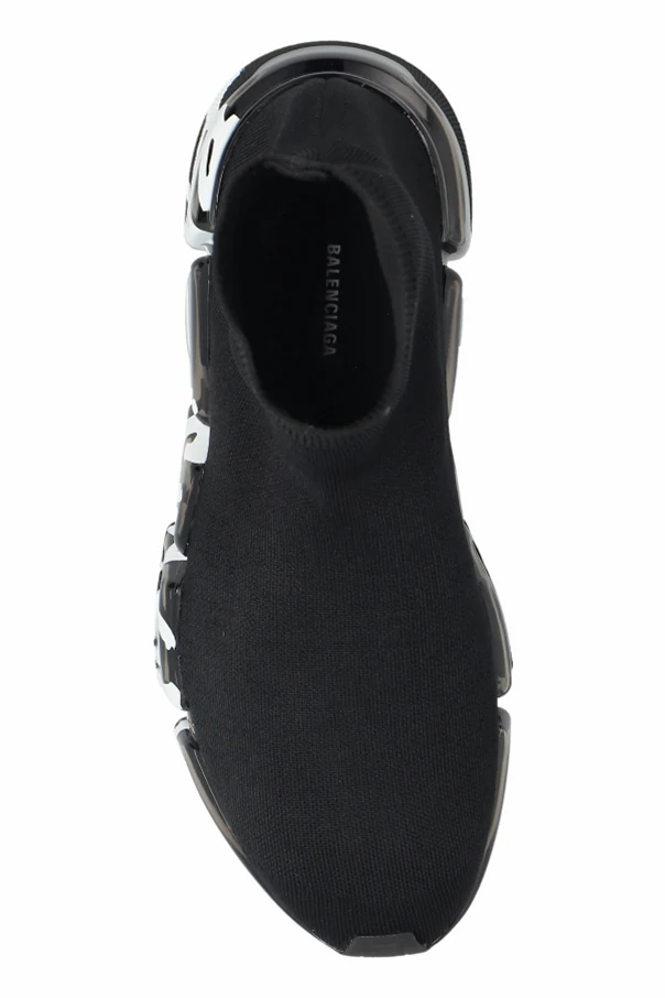 Wir präsentieren die SNEAKERS über den Knöchel 'Speed 2.0 LT' der exklusiven Marke Balenciaga . Diese schwarzen SNEAKERS, gefertigt aus elastischem Elasthan und Polyester, zeichnen sich durch ihre sockenartige Form aus, die eine perfekte Passform am Fuß gewährleistet.