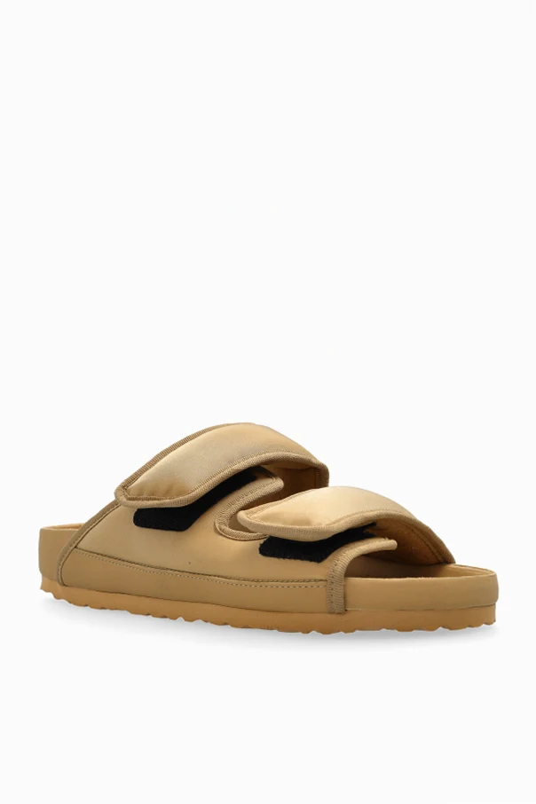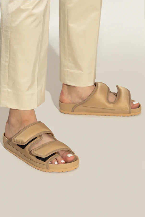 Diese einzigartigen Slide-Sandalen zeichnen sich durch ein minimalistisches Design in einem neutralen Beigeton aus, was ihre Vielseitigkeit in Styling-Angelegenheiten garantiert. Hergestellt aus hochwertigen Materialien wie Kunstleder und weichem Stoff, bieten sie unvergleichliche Haltbarkeit und Tragekomfort. Breite, mit Klettverschluss verstellbare Riemen sorgen für eine hervorragende Passform, und die solide profilierte Sohle gewährleistet Stabilität und rutschfeste Eigenschaften.