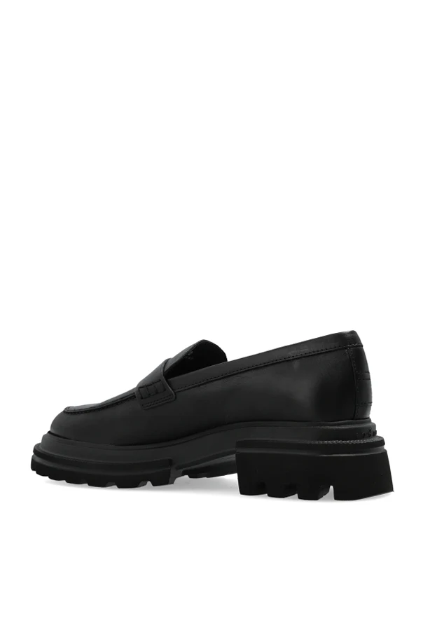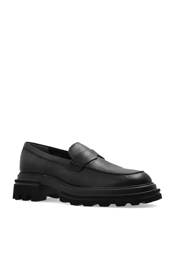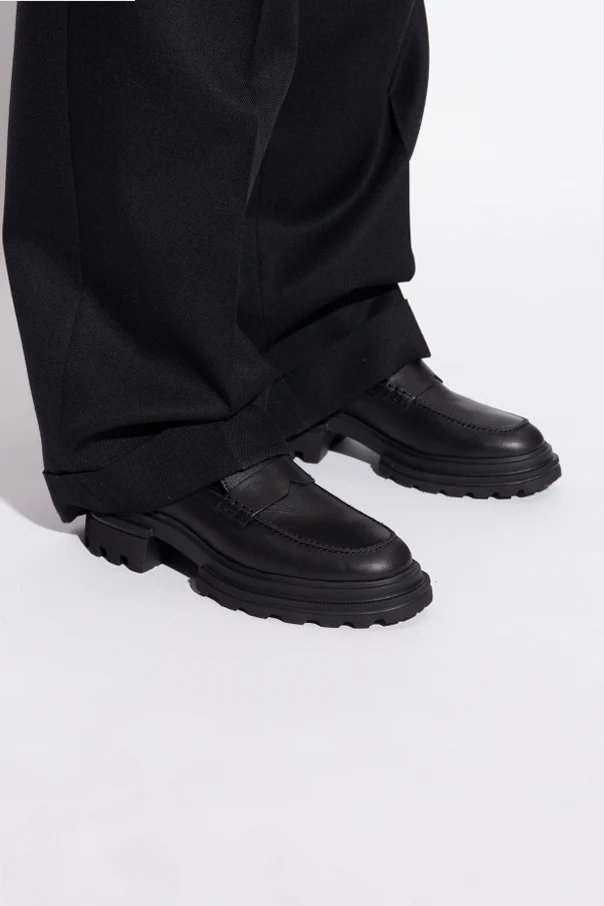 Das Obermaterial der Loafer besteht aus hochwertigem, glattem Glattleder in tiefem Schwarz. Auch das Innenfutter ist mit Leder ausgekleidet, was außergewöhnlichen Tragekomfort garantiert. Die ausdrucksstarke Plateau-Gummisohle sowie die sorgfältigen Nähte betonen die Qualität der Verarbeitung, während die reine, minimalistische Form bewahrt wird – mit einem einzigen, dekorativen Akzent: einem dezenten Riemen über dem Spann. Das diskrete Designer-Logo auf der Innensohle steht für handwerkliches Können und Prestige.