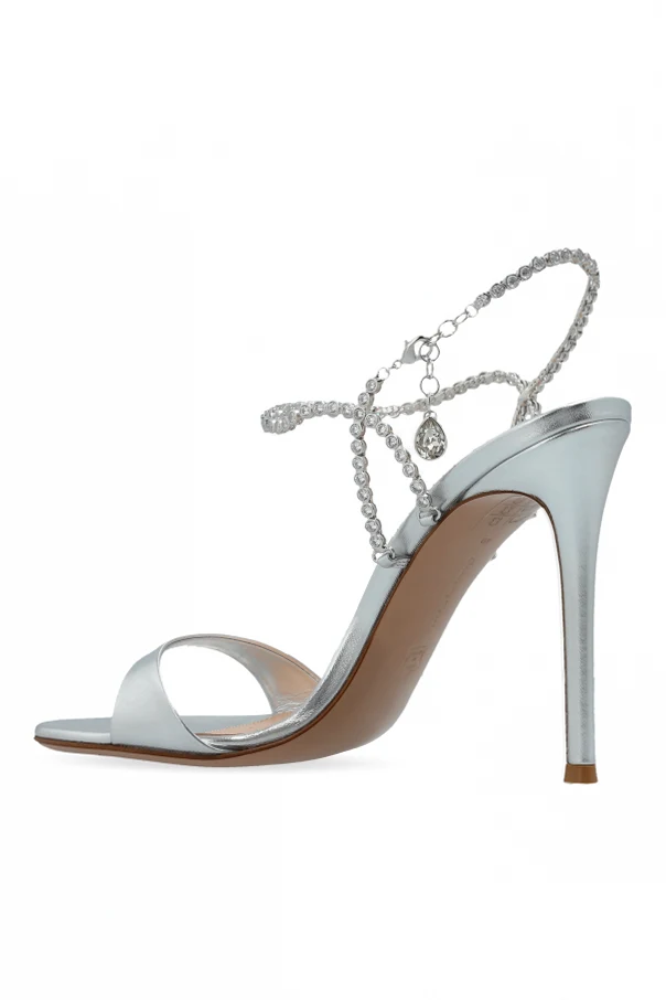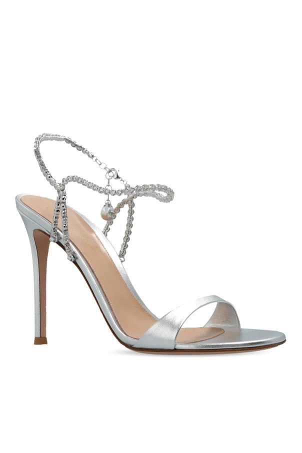 High-Heel-Sandalen von Gianvito Rossi sind das raffinierte Highlight jedes gehobenen Abendoutfits. Das dezent schimmernde, silberfarbene Obermaterial aus metallisiertem Leder harmoniert perfekt mit dem spiegelnden Effekt und dem minimalistischen Design. Der sinnliche, dünne Stiletto-Absatz streckt die Silhouette, während der harmonisch geformte Riemen an den Zehen für Leichtigkeit sorgt.