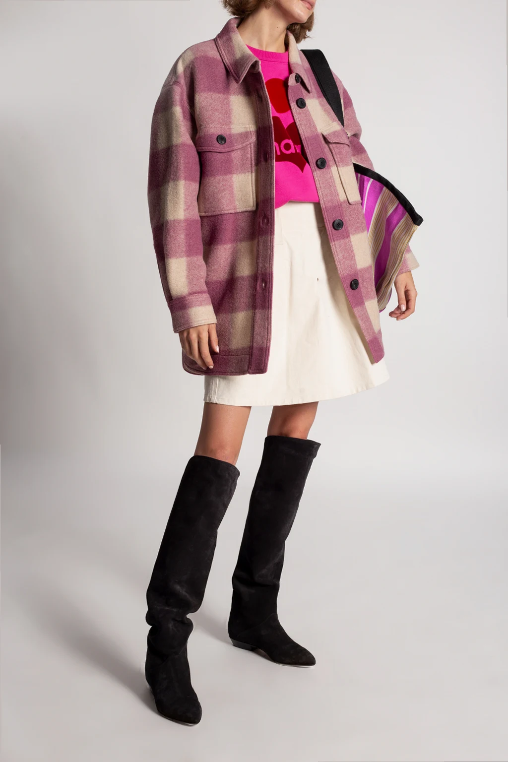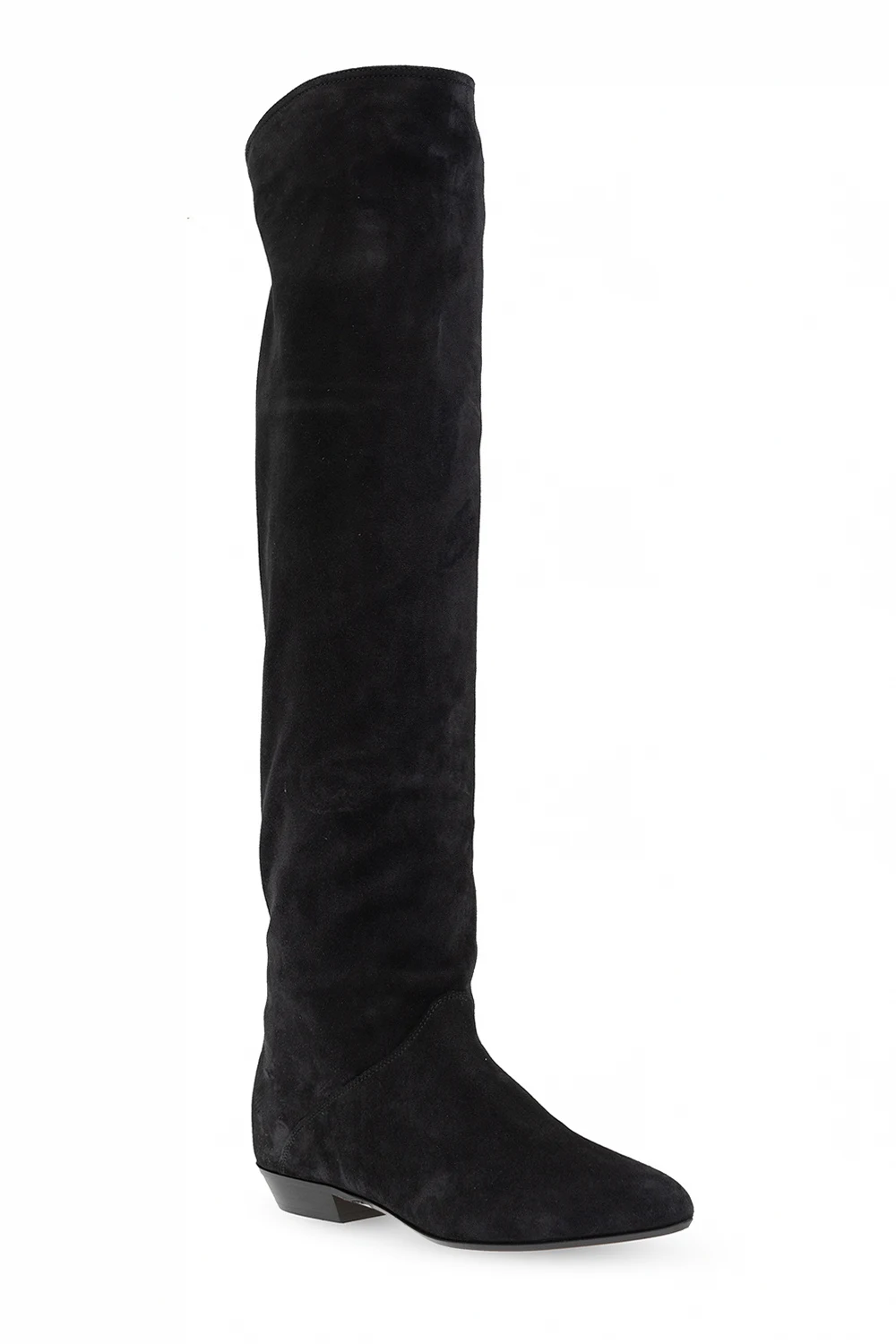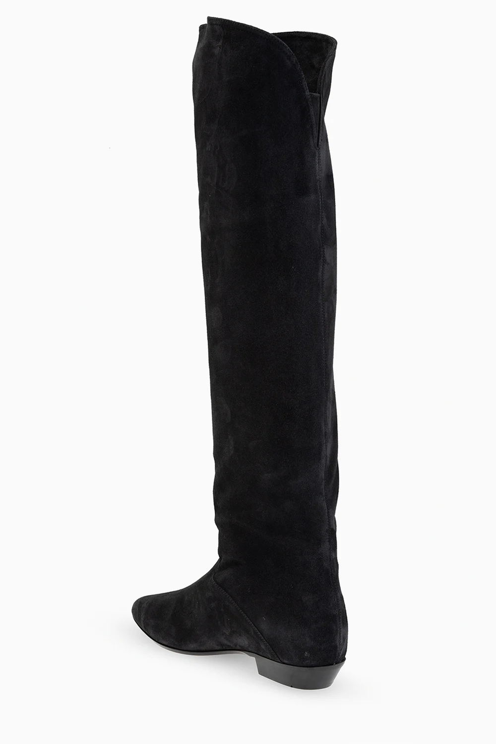 Black ‘Seelys’ boots from Isabel Marant. Crafted from suede, this pair rests in a leather sole in beige and black.