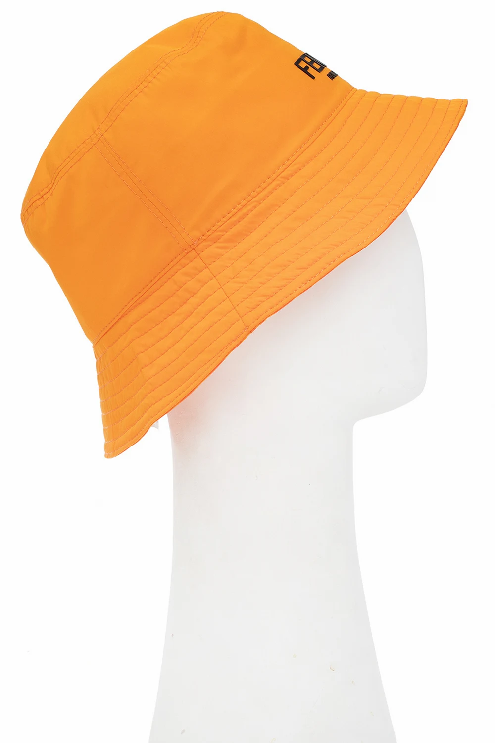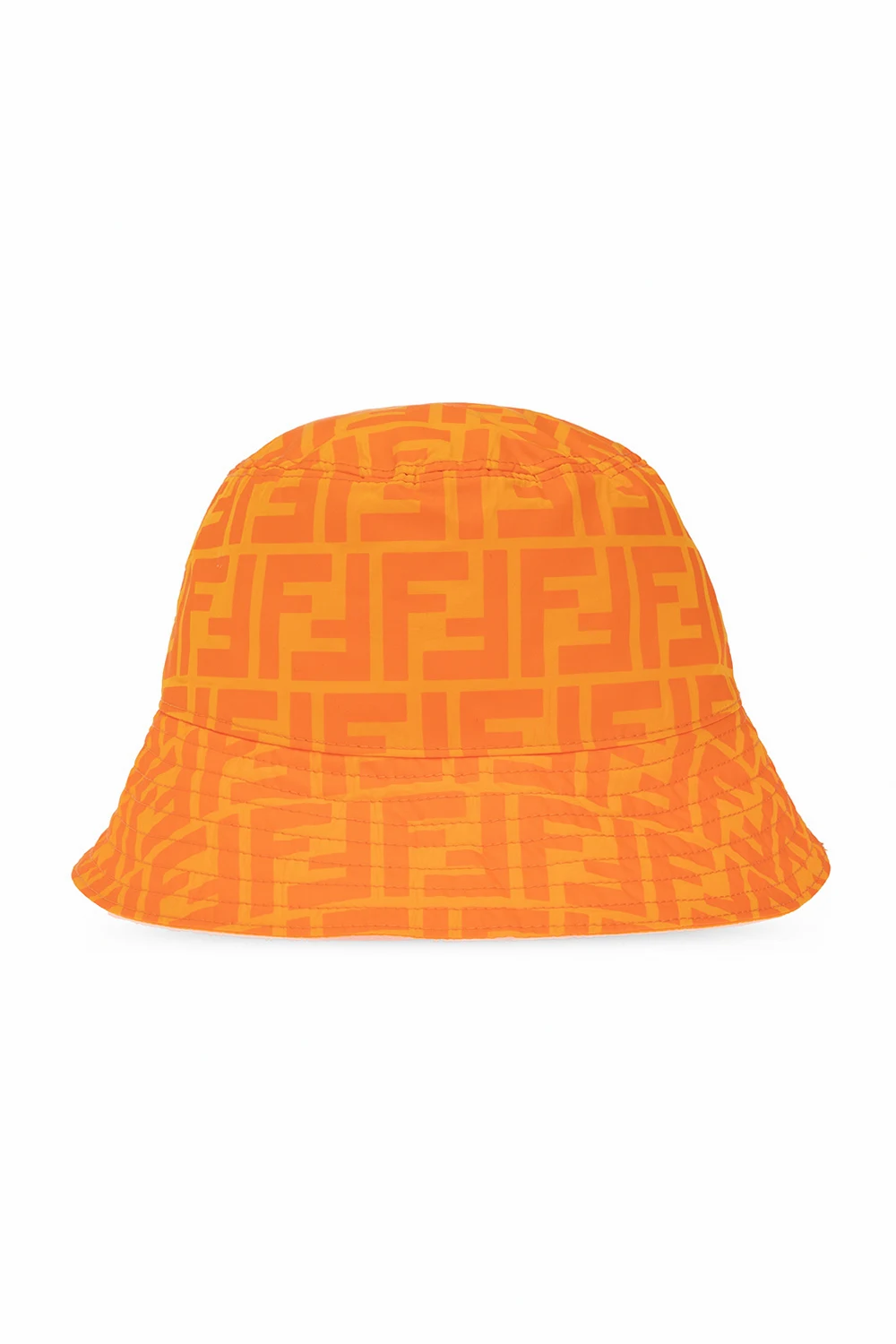 Orange bucket hat from Fendi Kids. Printed at front with the brand's logo in black, this item features the brand's monogram pattern on the inner side.