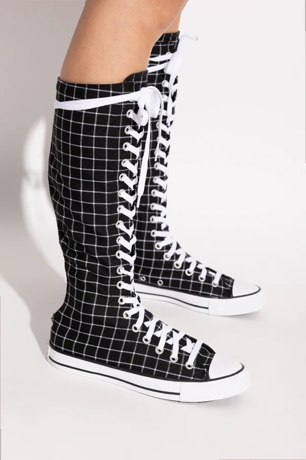Sportliche Schuhe CTAS XX-HI sind eine einzigartige Verkörperung einer Legende – High-Top-Sneaker, deren Schaft fast bis zum Knie reicht und mit einem ausdrucksstarken, schwarz-weißen Karomuster überrascht. Die von Hand gefertigte, atmungsaktive und leichte Außenschicht verbindet Strapazierfähigkeit mit außergewöhnlichem Tragekomfort.