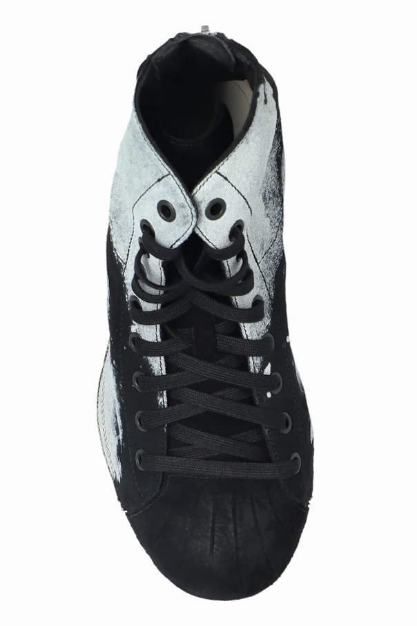 Sportschuhe ‘Nizzastar HI’ , entworfen vom Duo Y-3, sind eine meisterhafte Neuinterpretation des klassischen High-Top-Sneakers, die japanische Avantgarde harmonisch mit deutscher Präzision verbindet. Das schwarze Design, durchzogen von einem einzigartigen, handgemalten Effekt in Weiß und Grau, unterstreicht die künstlerische Unabhängigkeit jedes Paares und macht sie zu einem unverwechselbaren Akzent in jedem Outfit.