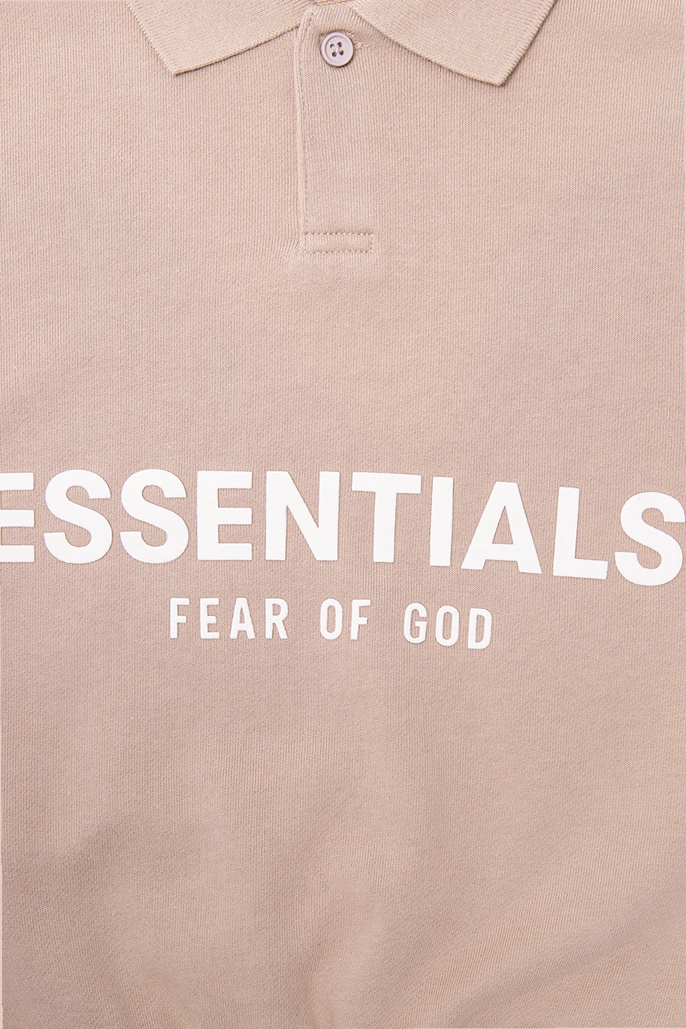 Beige sweatshirt with a collar from Fear Of God Essentials Kids. Crafted from cotton, this garment is complete with button fastenings, cream logo with a velvet finish, rubber logo patch in black and ribbed trims at the hem and cuffs.
