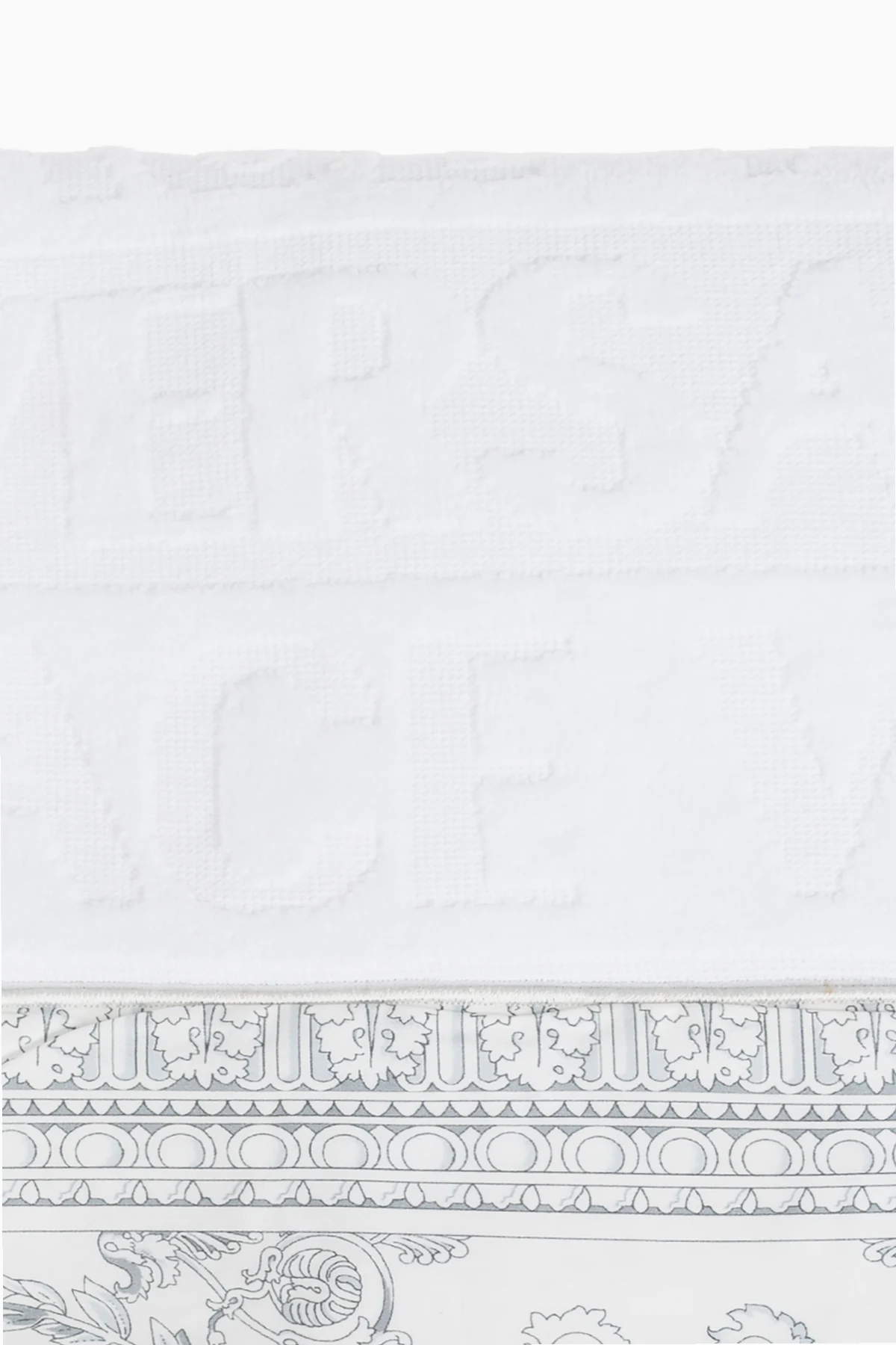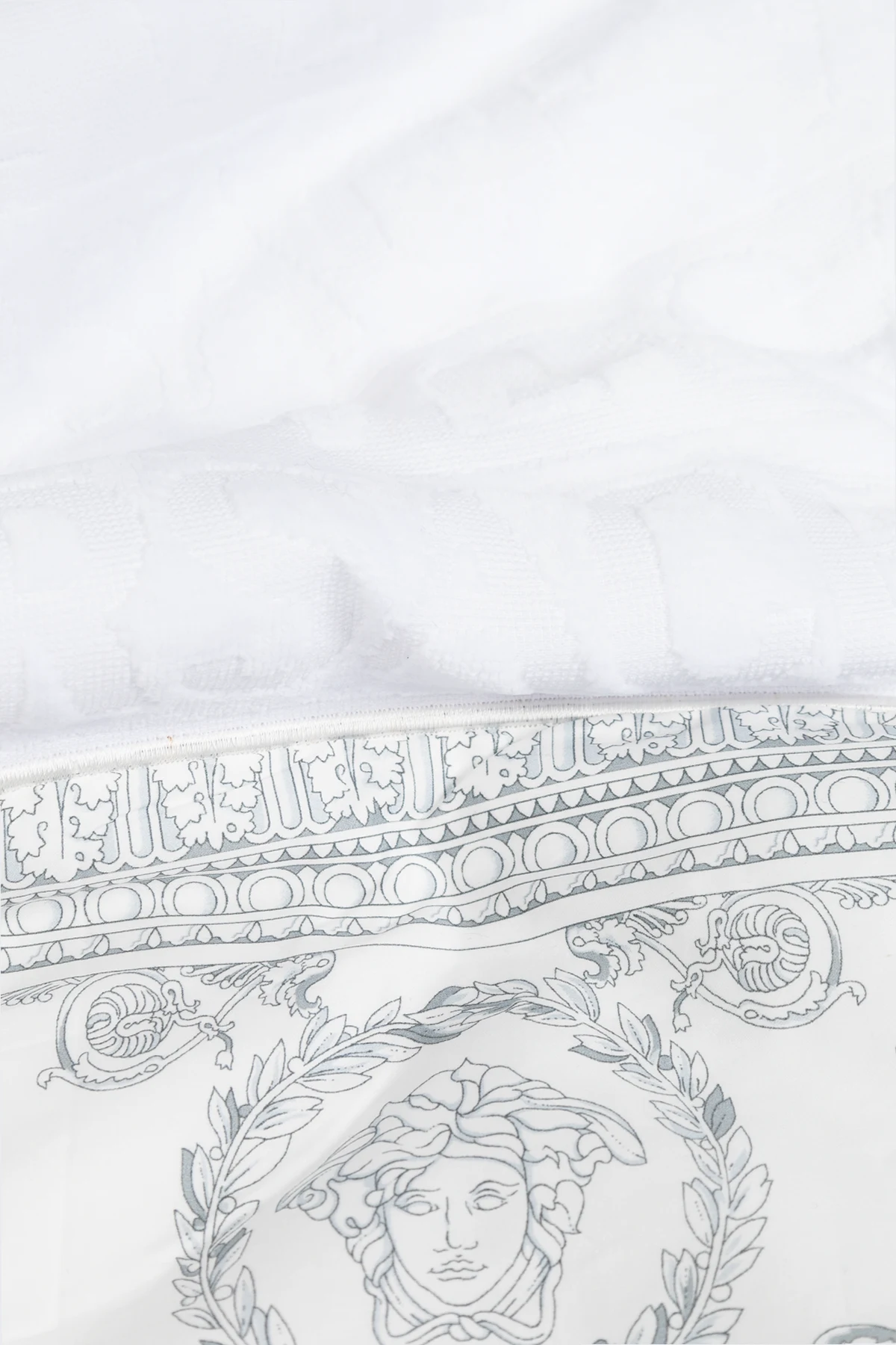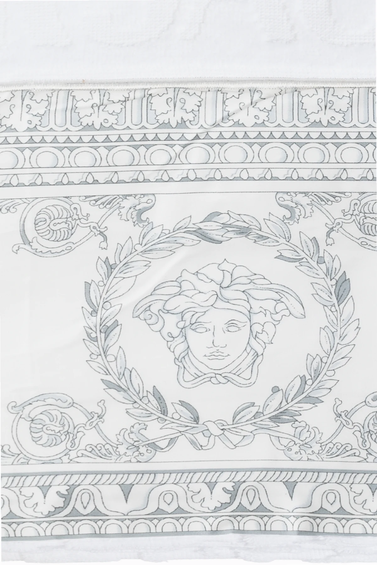 Edle Muster, inspiriert von griechischen Ornamenten, sowie das Medusa-Motiv, charakteristisch für die Ästhetik von Versace, zieren die Ränder des Handtuchs und verleihen ihm einen einzigartigen Charakter. Die dezente Prägung des Markenlogos auf der Oberfläche verleiht dem Ganzen ein prestigeträchtiges Aussehen und macht dieses Produkt zu einem sowohl funktionalen als auch luxuriösen Accessoire für jedes Badezimmer.