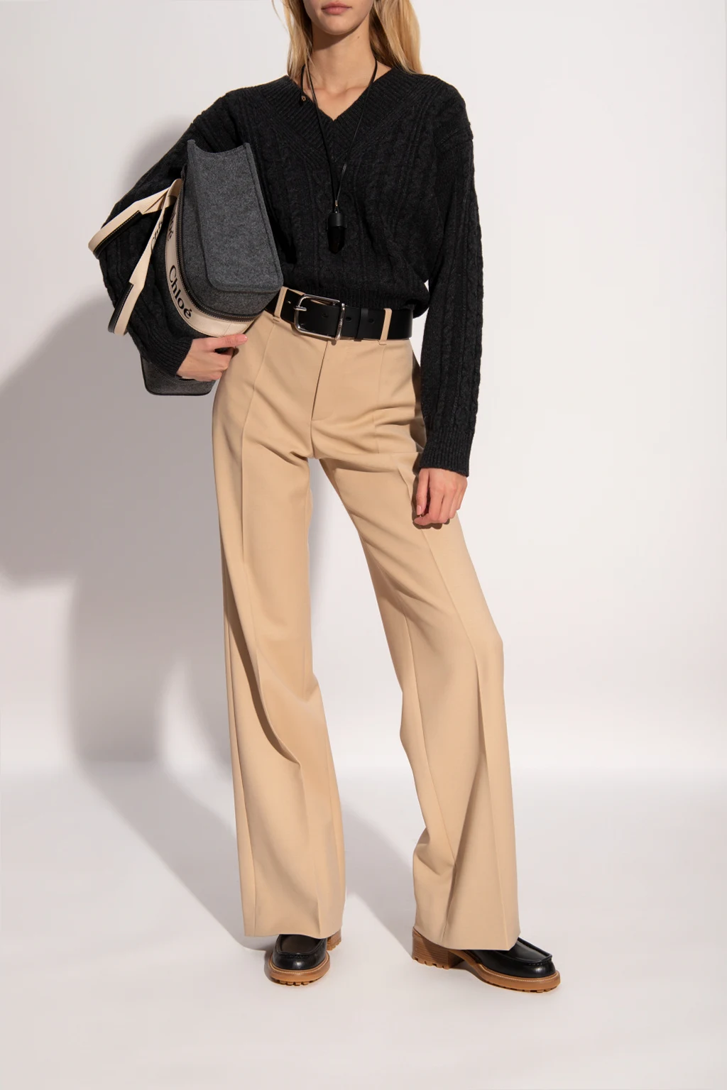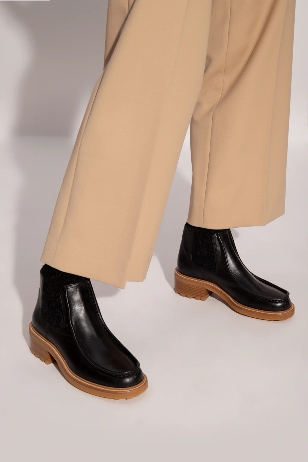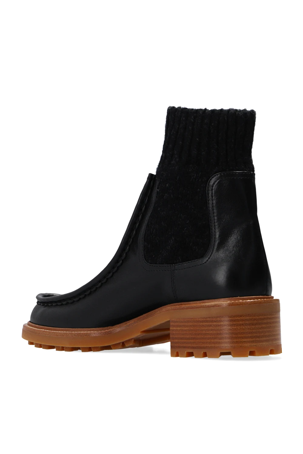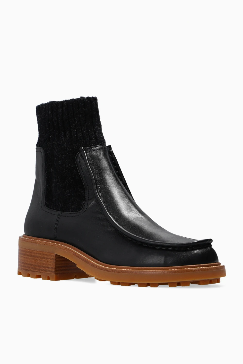 Black ‘Jamie’ heeled boots with sock inserts from Chloé. Crafted from leather, this slip-on pair features decorative stitching details and a beige rubber sole.