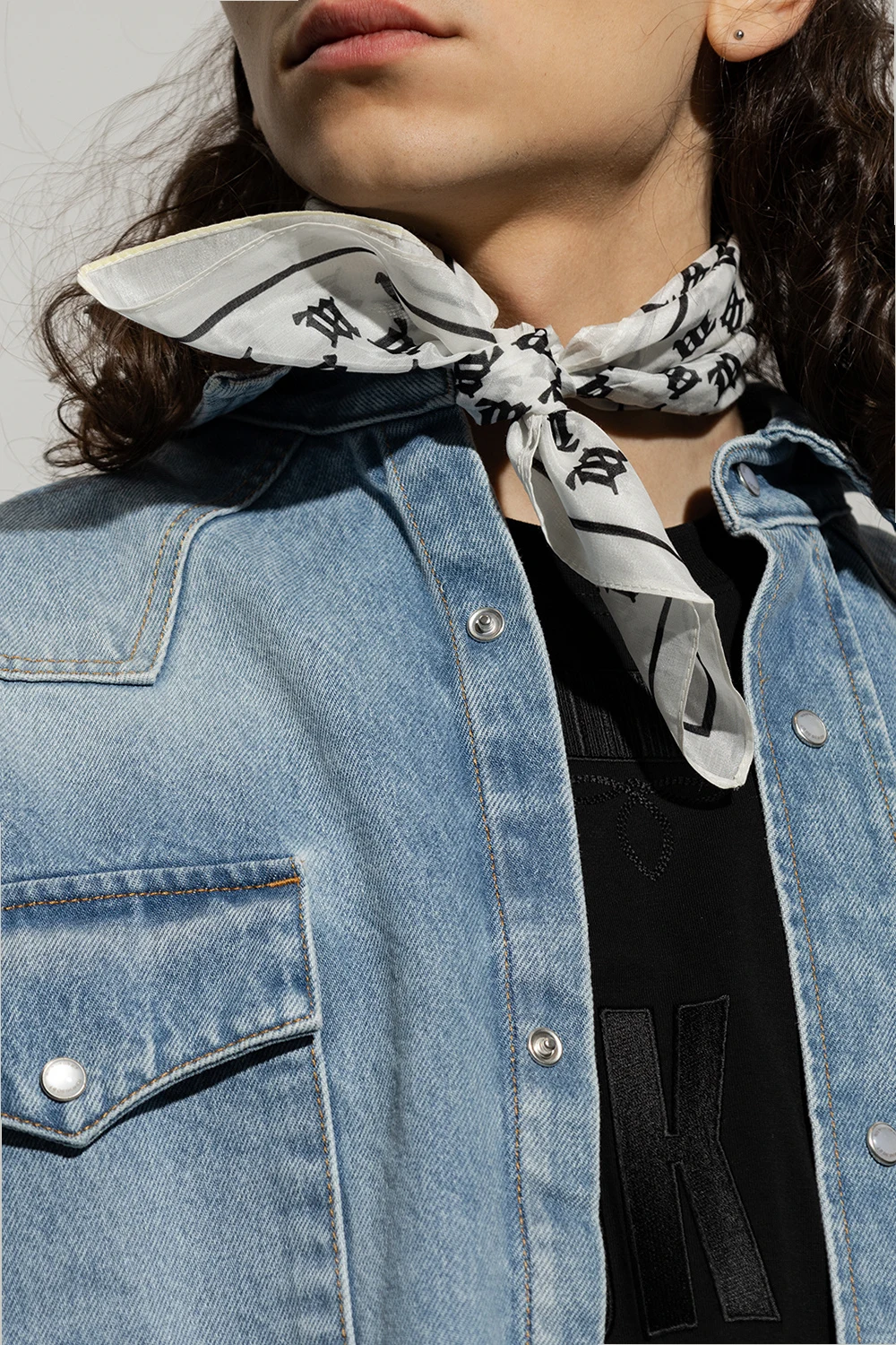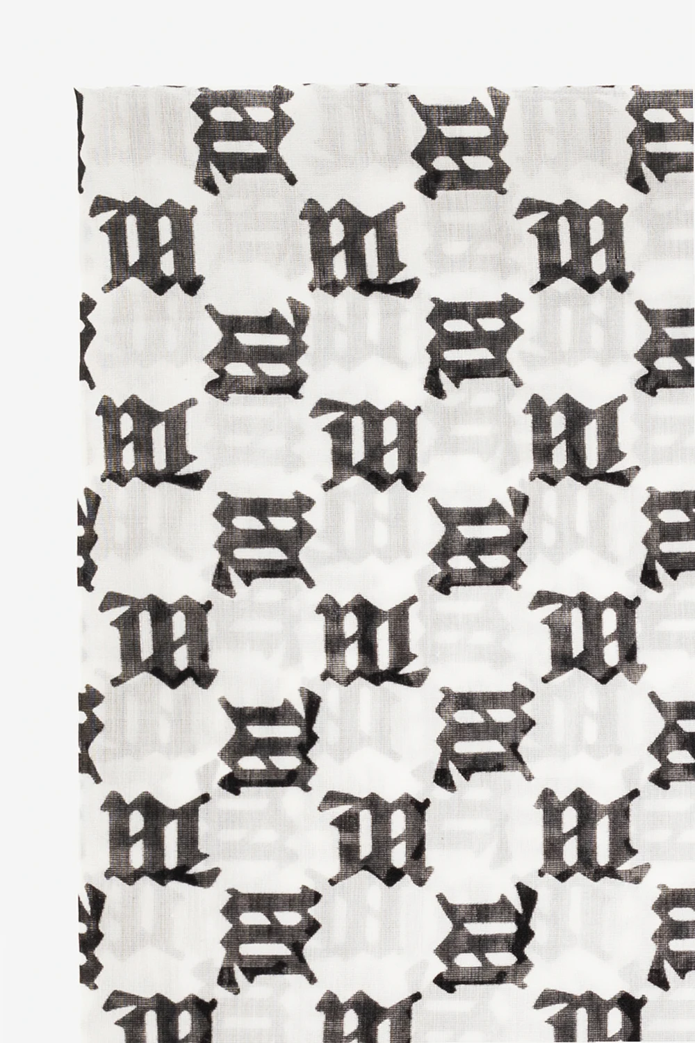 White and black scarf from MISBHV. Made from a cotton and silk blend, this item is decorated with a monogram and logo patch.