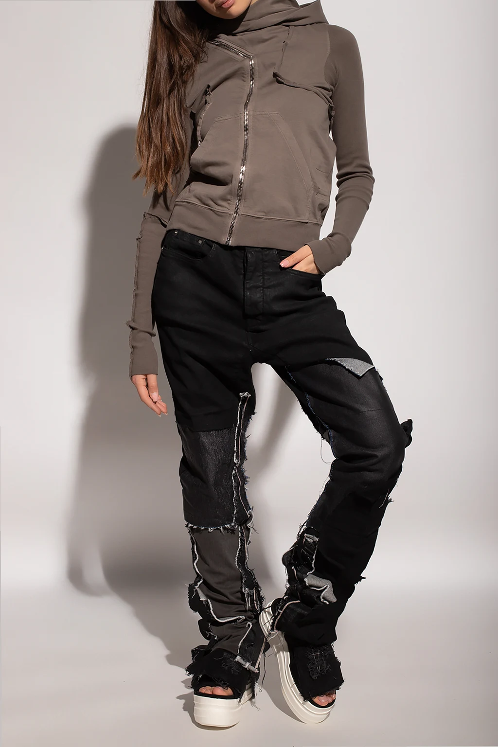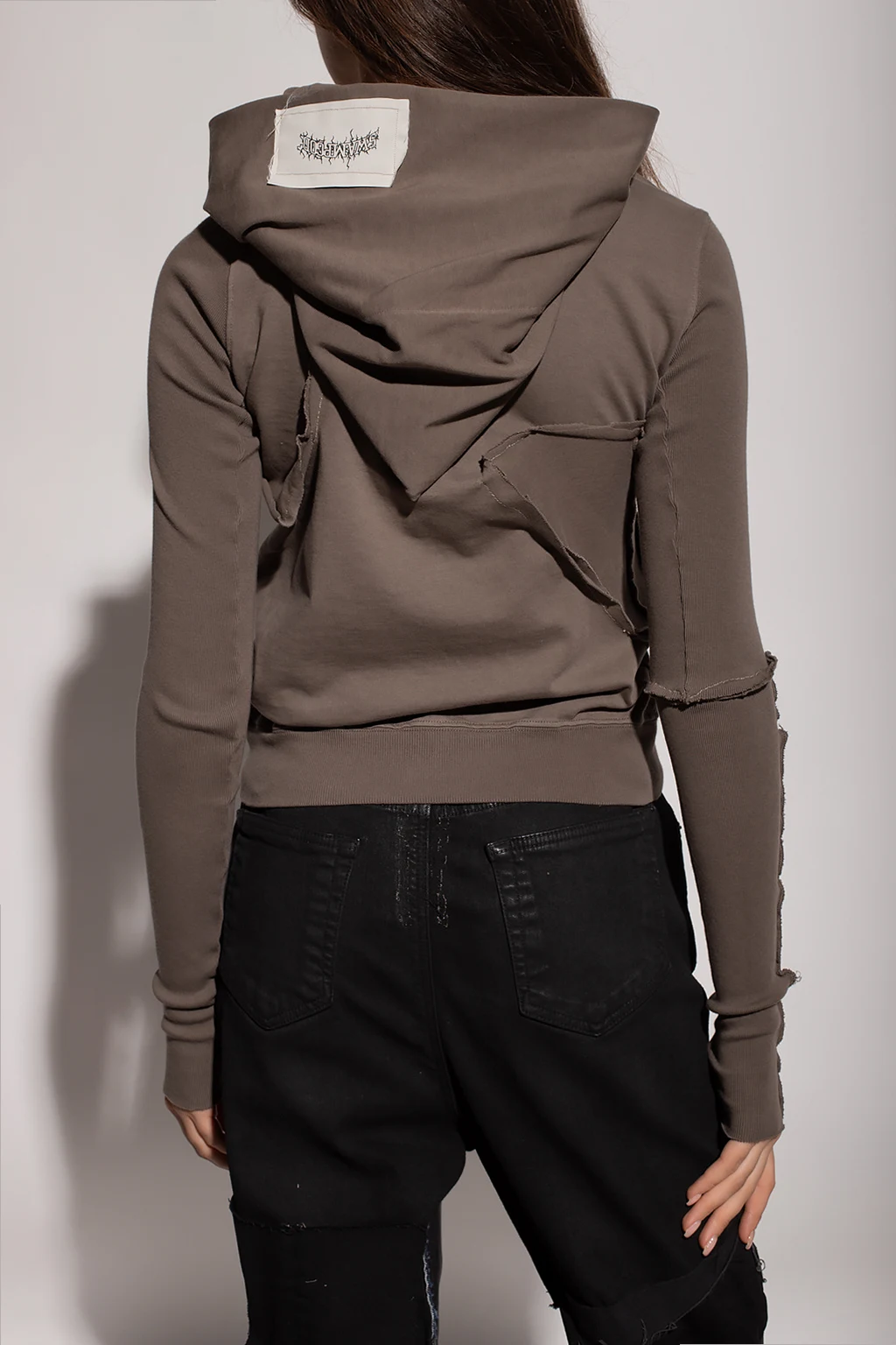 Brown sweatshirt from Rick Owens x Swampgod. Made of cotton, this style features a zip fastening, distinctive raw-cut stitching and seams, and an elasticated bottom hem and cuffs.