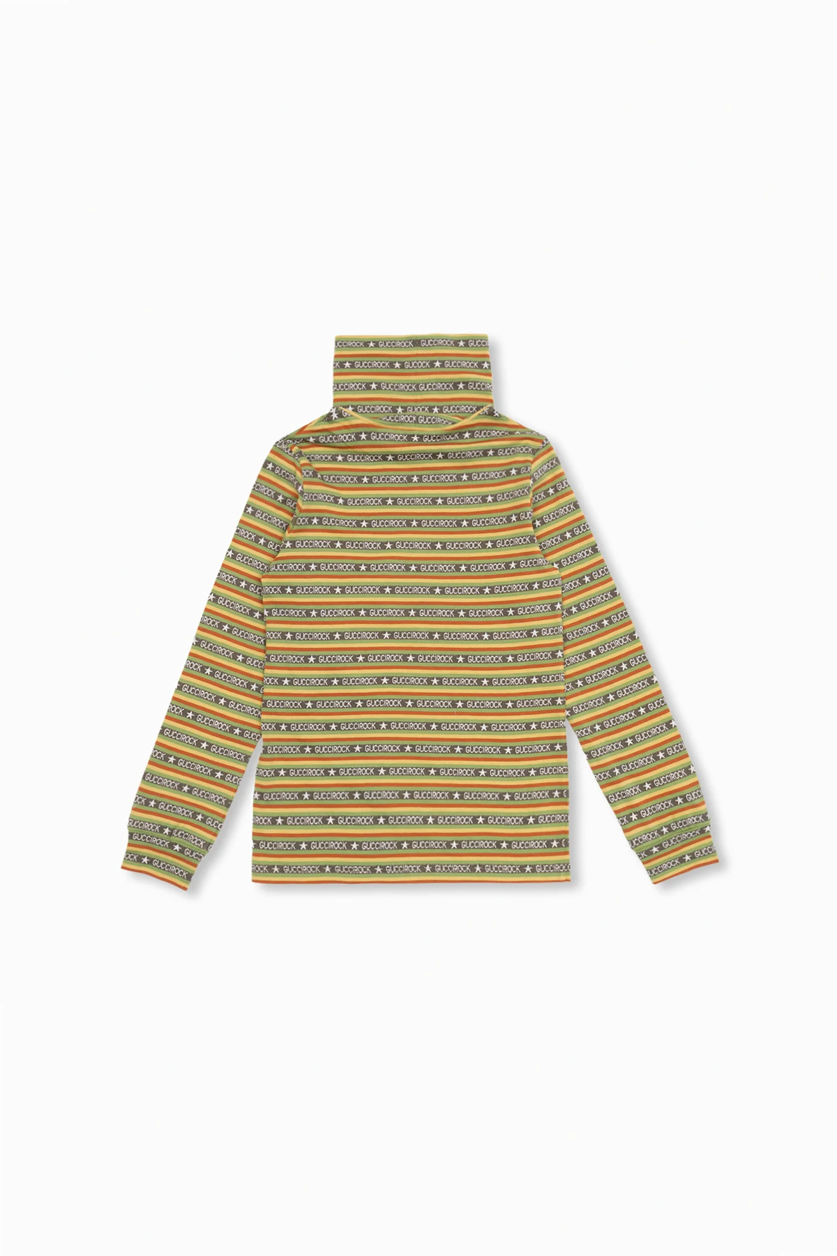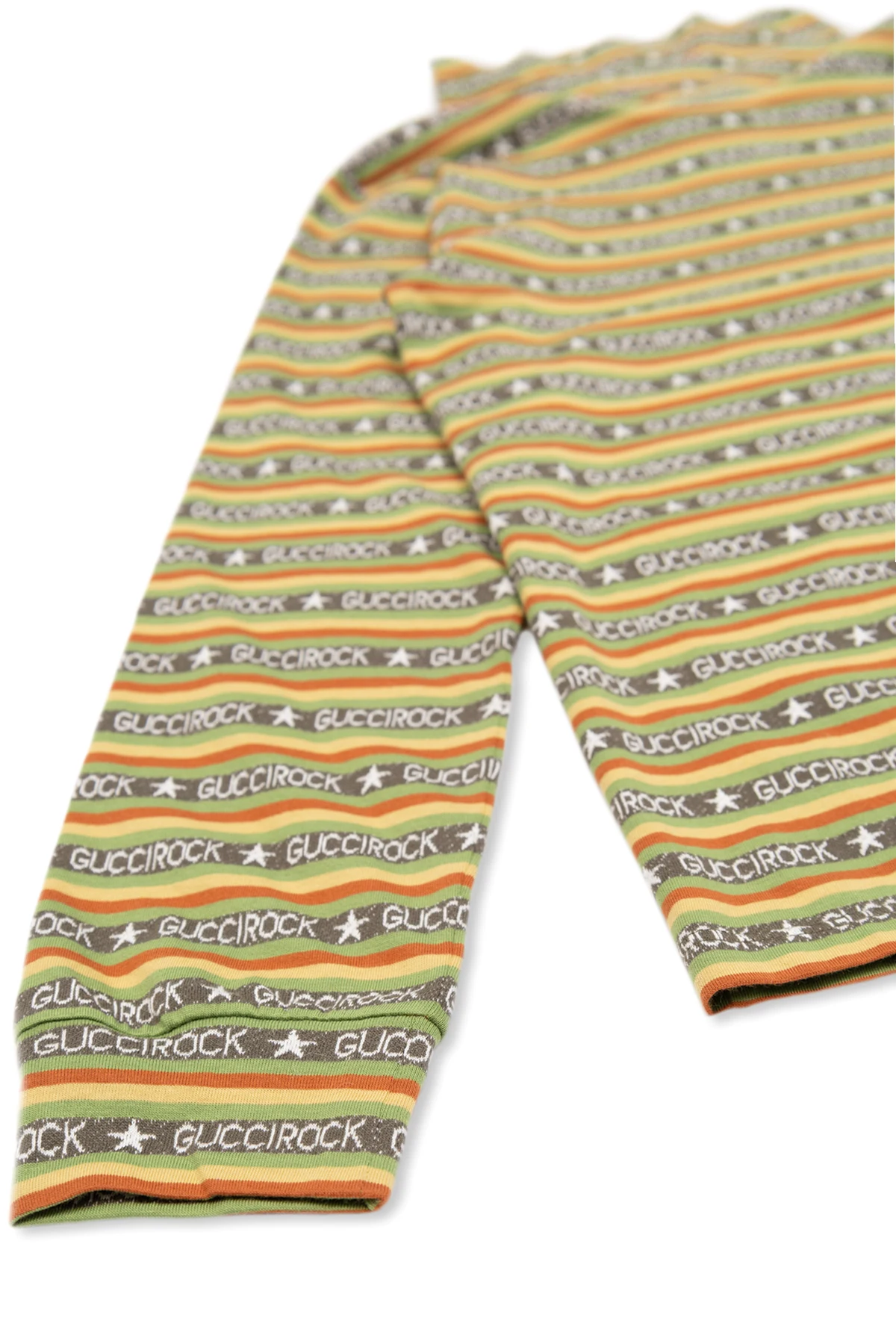 Multicoloured turtleneck sweater from Gucci Kids. Crafted from cotton, this style features a stripe pattern, logo detailing and long sleeves.