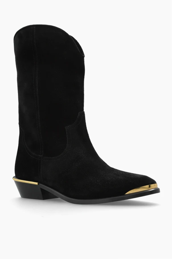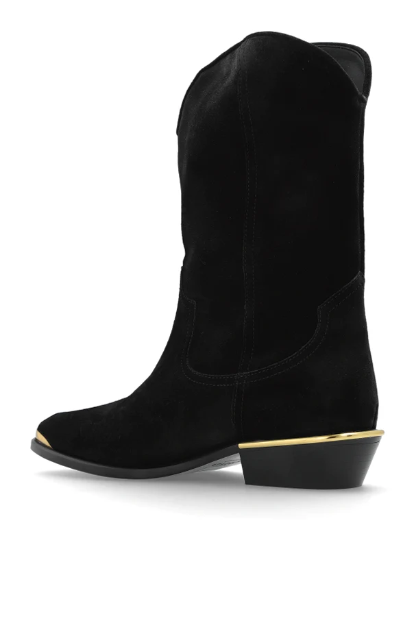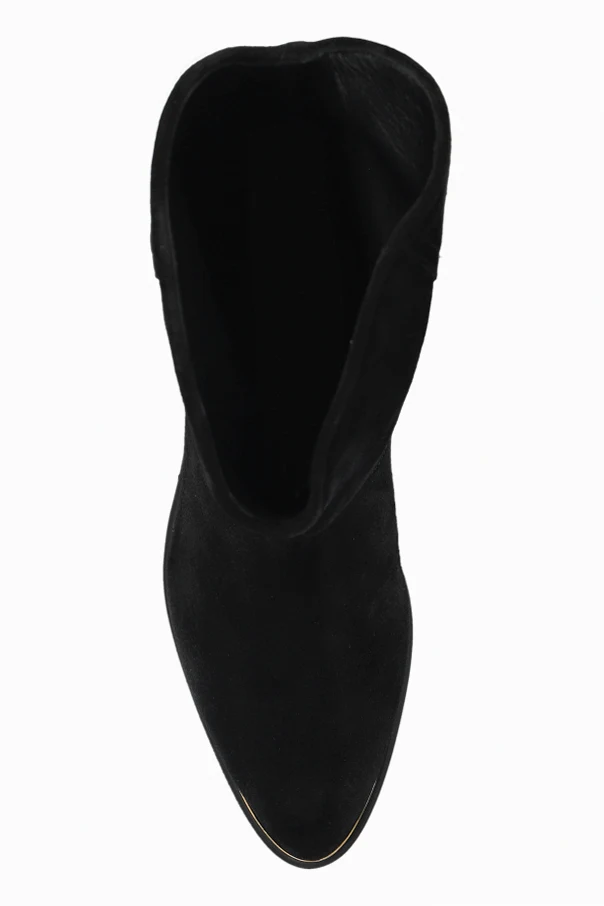 Die Veloursleder-Boots Elbana von der herausragenden Designerin Isabel Marant verkörpern die Quintessenz moderner Eleganz mit einem Hauch französischen Charmes. Sie sind vollständig aus hochwertigem Leder im edlen, schwarzen Velours gefertigt, begeistern mit matter Oberfläche und der subtilen Raffinesse einer minimalistischen Silhouette, die an klassische Cowboyboots erinnert.