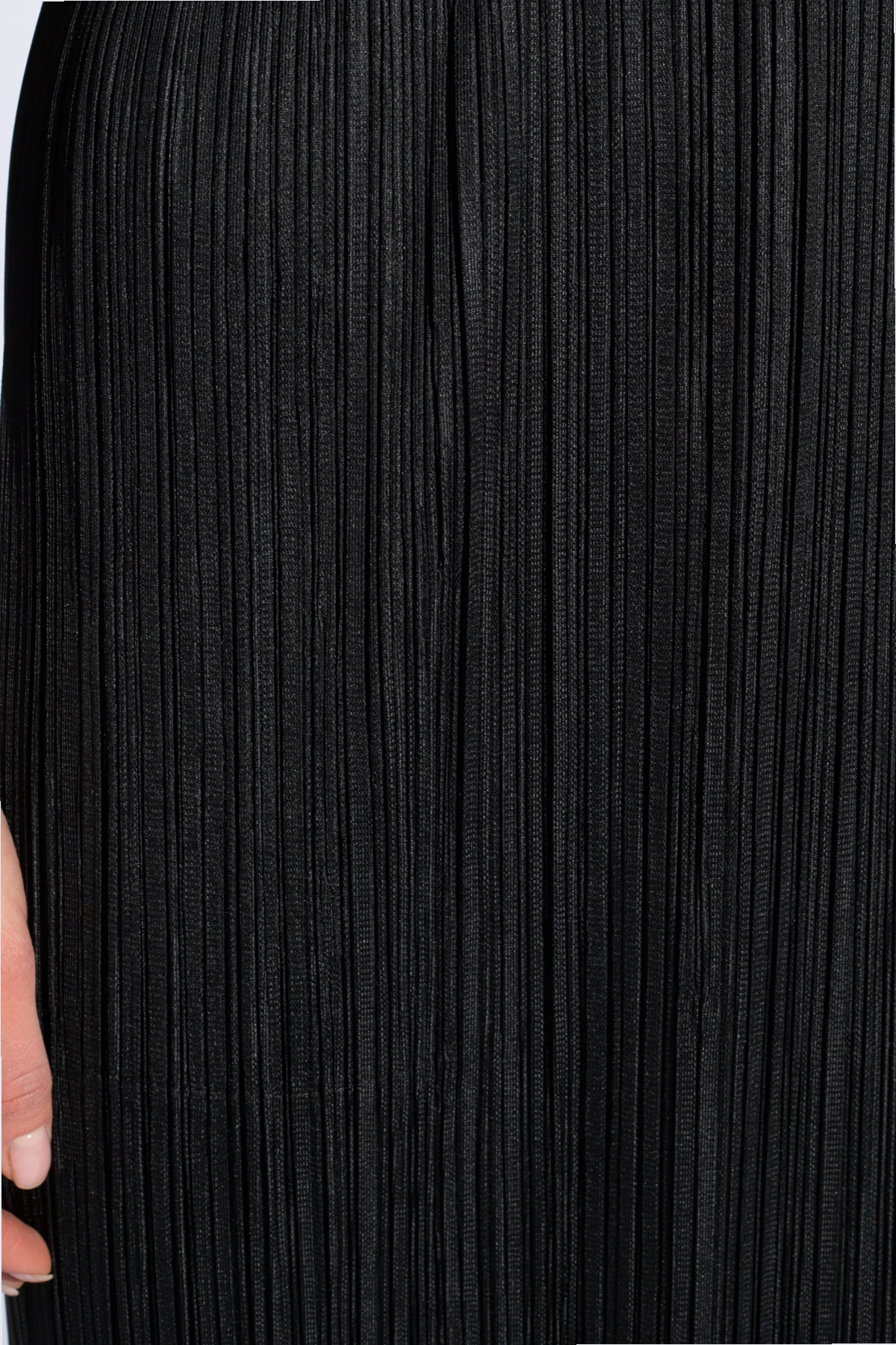 Die Bluse verfügt über einen klassischen Kragen und dezent angepasste Knöpfe, die ihre elegante Linie unterstreichen. Lange, schlanke Ärmel und eine leicht taillierte Passform formen die Silhouette perfekt und bieten gleichzeitig Tragekomfort durch die Elastizität des Materials. Das Plissee, das sowohl auf der Vorder- als auch auf der Rückseite der Bluse fortgeführt wird, sorgt für ein kohärentes und ästhetisches Erscheinungsbild aus jeder Perspektive.