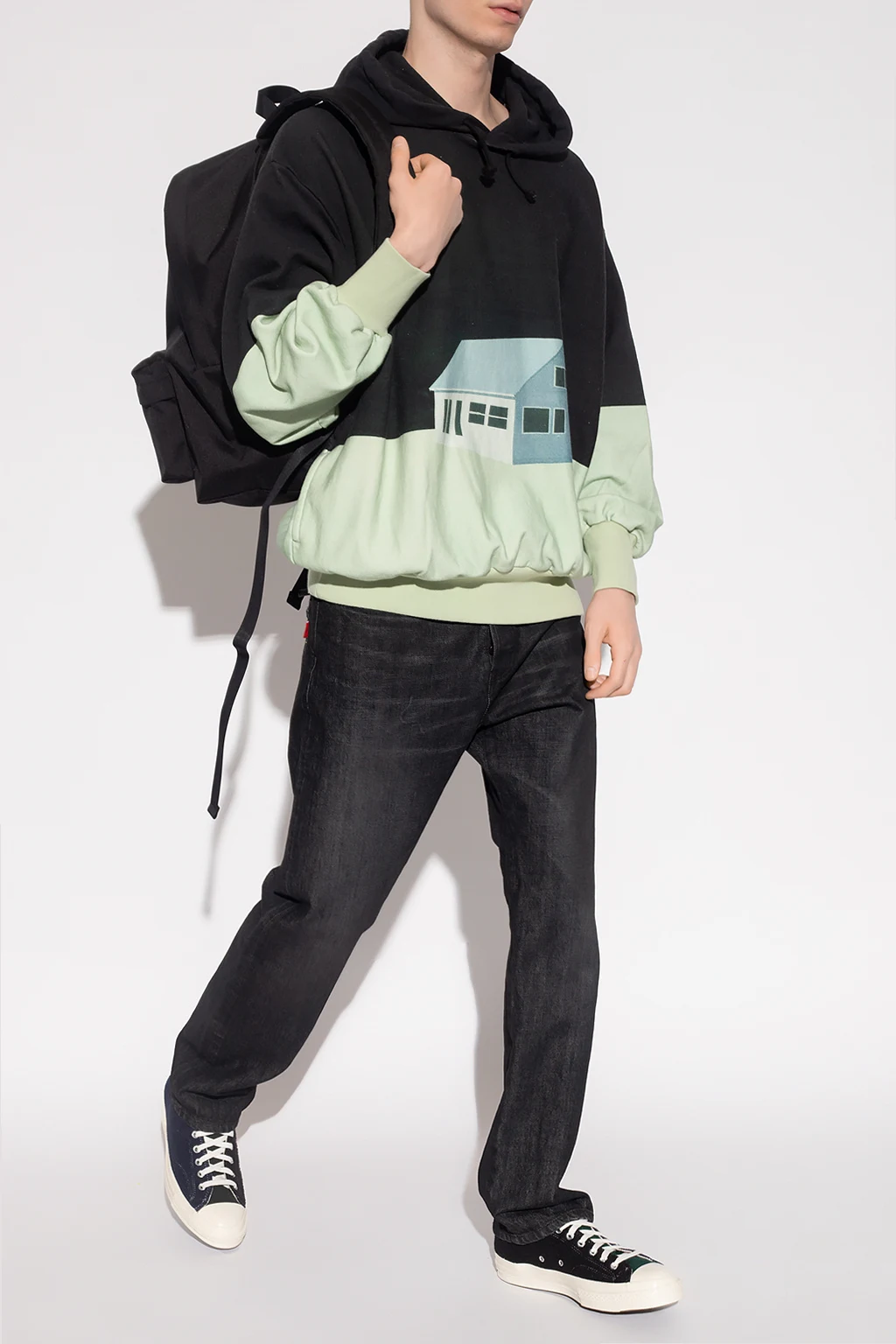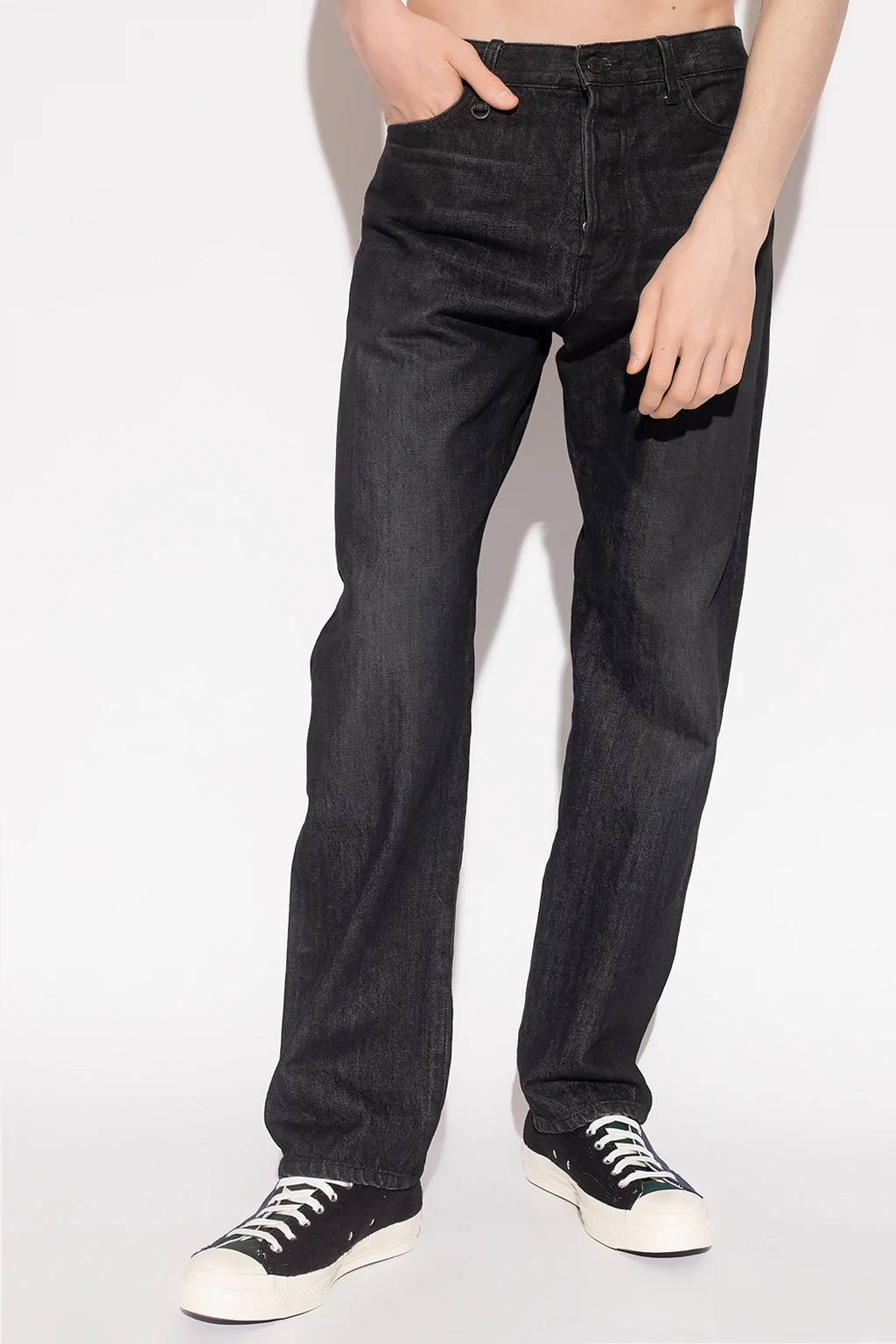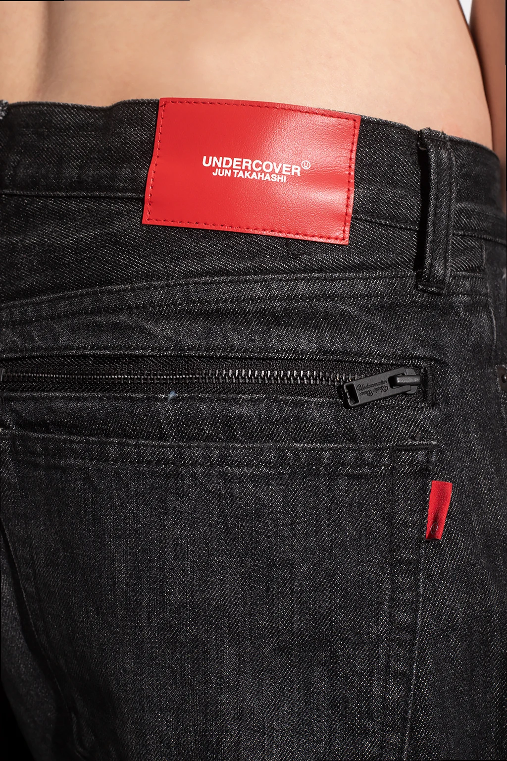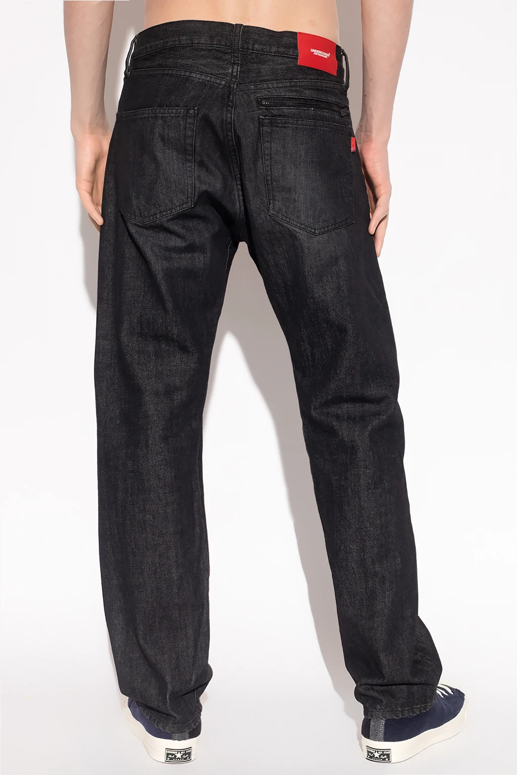 Black jeans from Undercover. Falling with straight legs, this pair features button fastenings and six pockets on each side, including a back zip pocket.