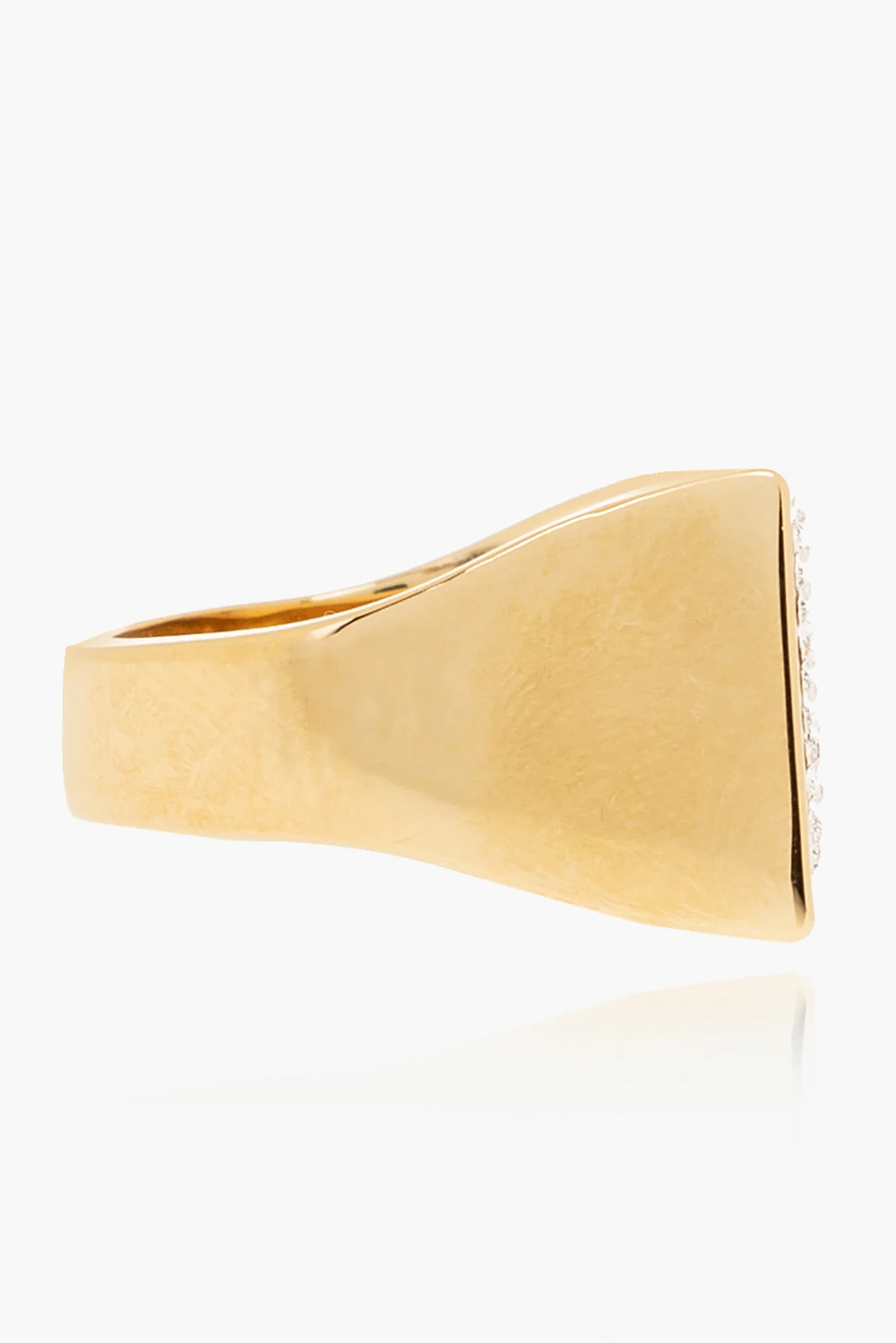 Gold-tone ring with a ‘Face’ logo and silver-tone crystals from Acne Studios. Made of brass.