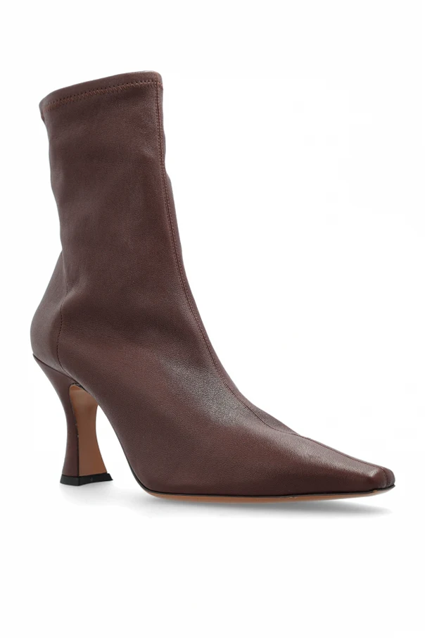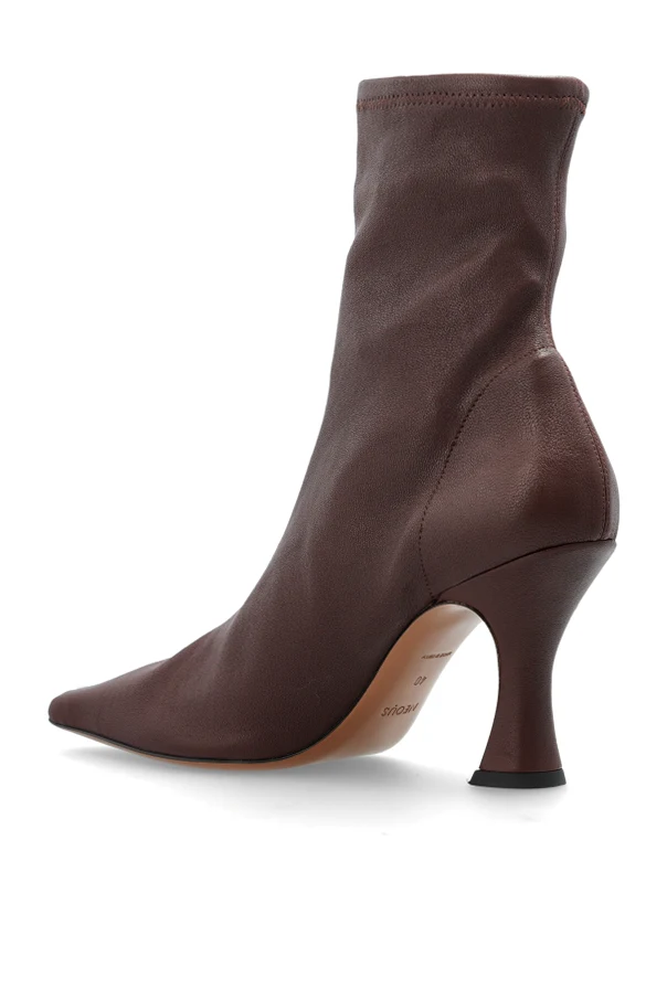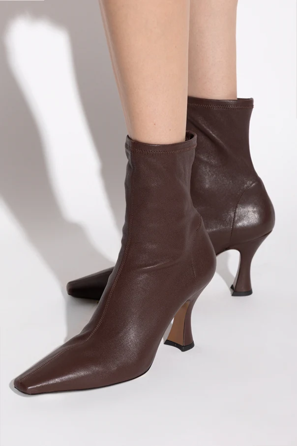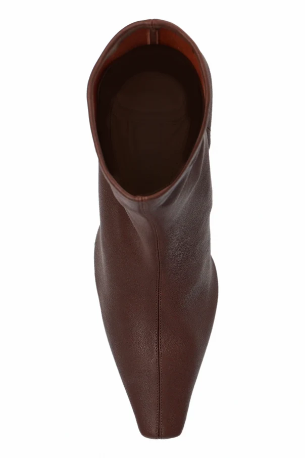 Stiefeletten mit Absatz „Ran“ verkörpern die Quintessenz raffinierter Eleganz und modernen Minimalismus. Ihr schlanker, an den Knöchel angepasster Schaft, der dezent über den Knöchel reicht, harmoniert perfekt mit der verlängerten, leicht spitz zulaufenden Schuhspitze. Diese durchdachte Formgebung unterstreicht den einzigartigen und anspruchsvollen Charakter des Schuhwerks.