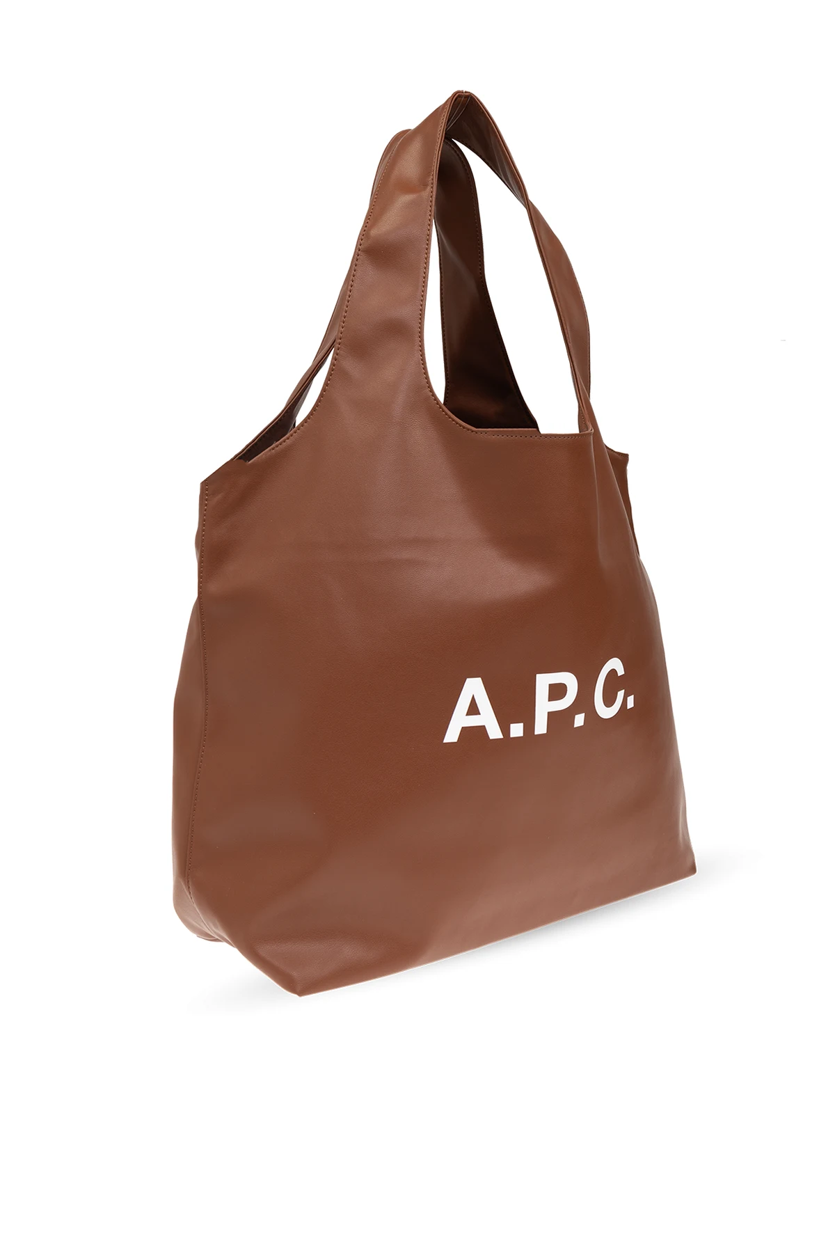 Aus hochwertigem Leder mit glatter Textur gefertigt, zeichnet sich diese Tasche durch die Abwesenheit sichtbarer Nähte auf der Vorderseite aus, was von meisterhaftem Handwerk zeugt. Das große, weiße “A.P.C.” -Logo, zentral platziert, ist ein elegantes, erkennbares Markenzeichen. Ihre geräumige Form mit großen Griffen ermöglicht ein bequemes Tragen über der Schulter und macht sie zum idealen Begleiter für den täglichen Gebrauch.