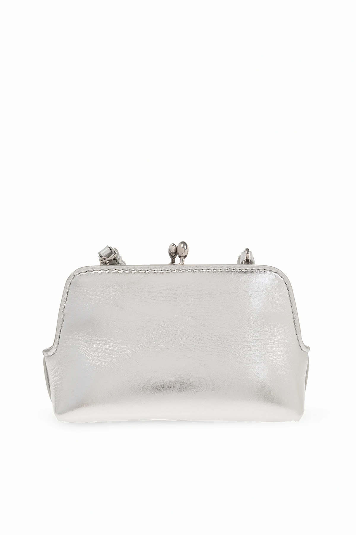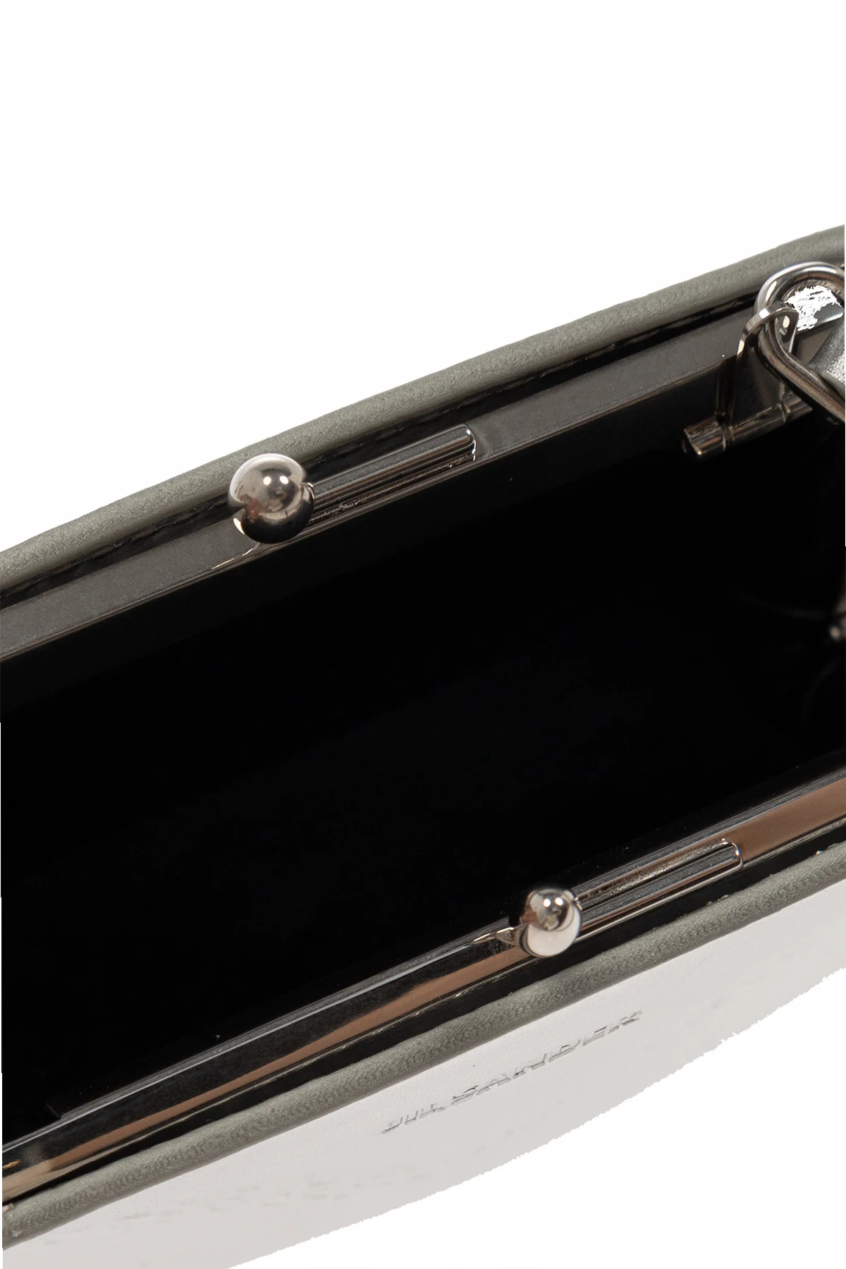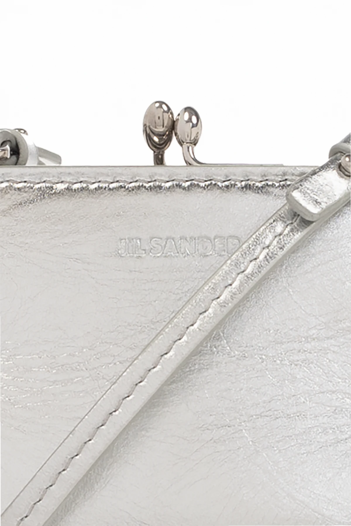 Silver-tone ‘Goji Micro’ shoulder bag from Jil Sander. Made of leather, this design secures with a snap and showcases an embossed logo on the front. It is complete with a long strap, silver-tone metal hardware and one internal compartment.