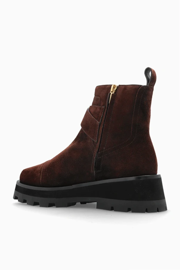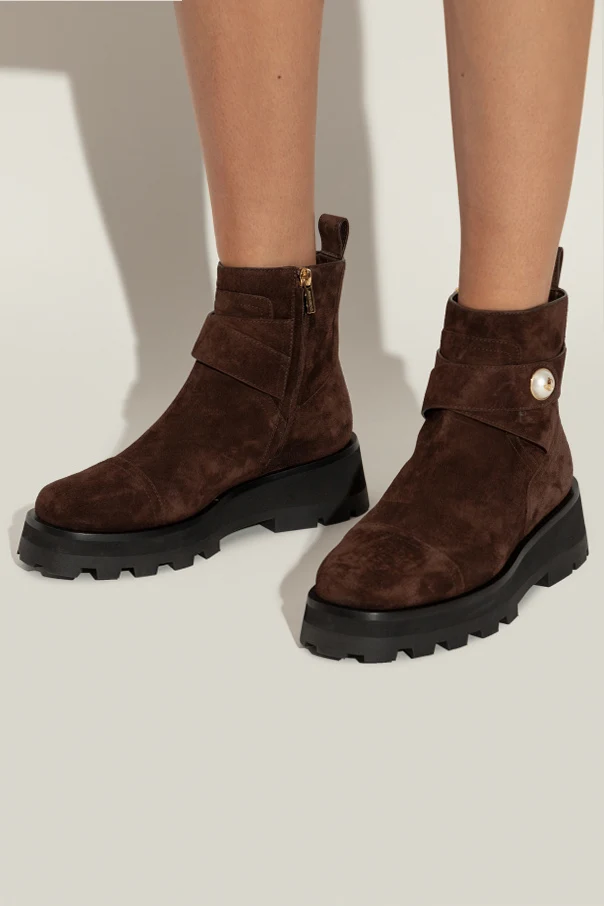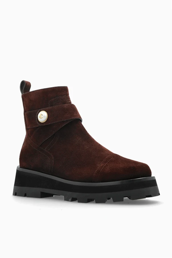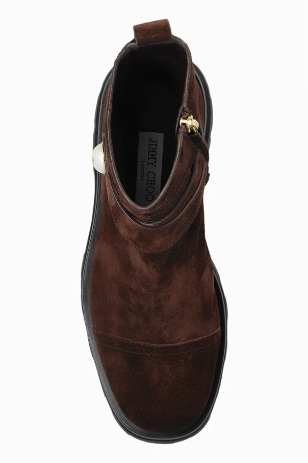 Stiefeletten „Meena“ vom renommierten Modehaus Jimmy Choo sind die Essenz urbaner Eleganz und verbinden eine zeitlose Silhouette mit raffinierter Form. Ihr halbhohes Design besticht durch ein klassisches, verlängertes Profil mit abgerundeter Spitze, während das einheitliche, edle braune Veloursleder harmonisch mit dem minimalistischen Design zusammenspielt.