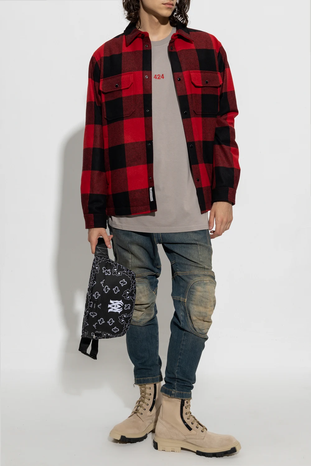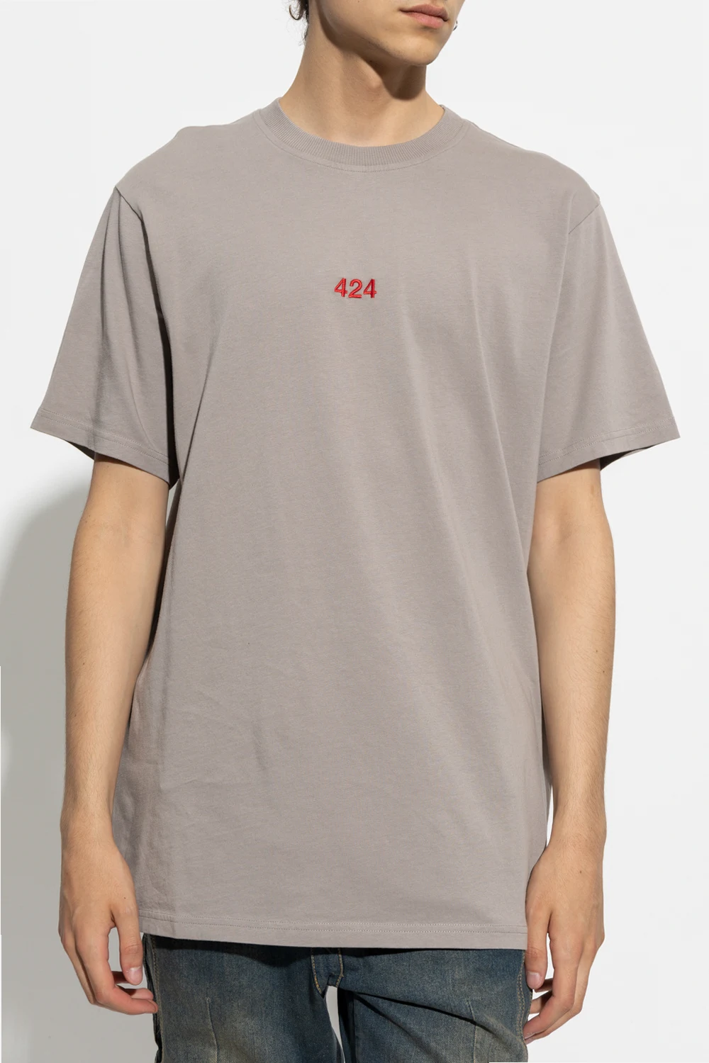Grey T-shirt from 424. Made of cotton, this garment features a red logo embroidery and ribbed crew neck.