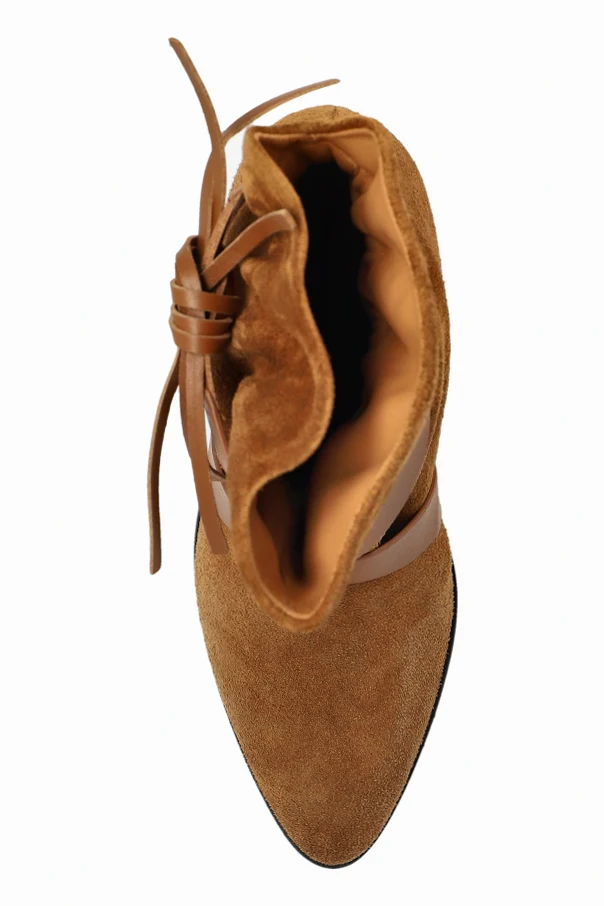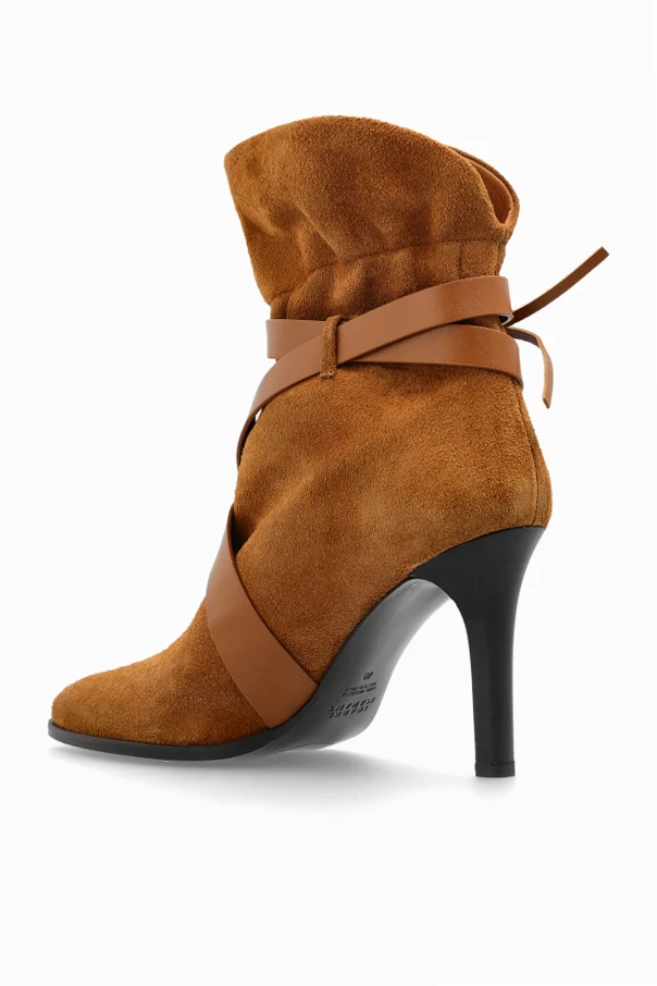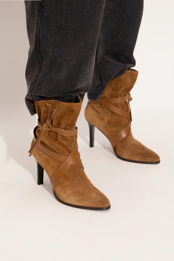 Atiny Stiefeletten mit Absatz , entworfen von der renommierten Isabel Marant, begeistern durch eine raffinierte Ästhetik, die von Schlichtheit und Charakter geprägt ist. Die schlanke Silhouette mit leicht zulaufender Spitze und der locker geraffte Schaft betonen dezent den sinnlichen Charakter des Schuhwerks. Der „Soft Slouch“-Effekt wird durch zwei dekorative Riemen mit Schleifen als raffiniertes Detail abgerundet.