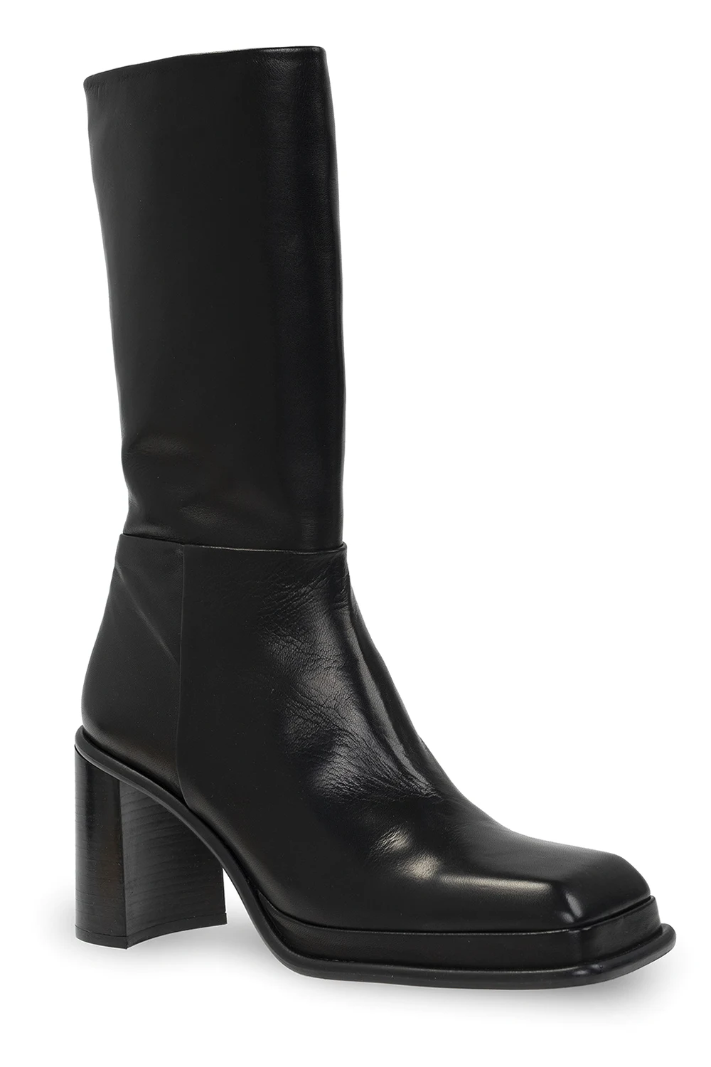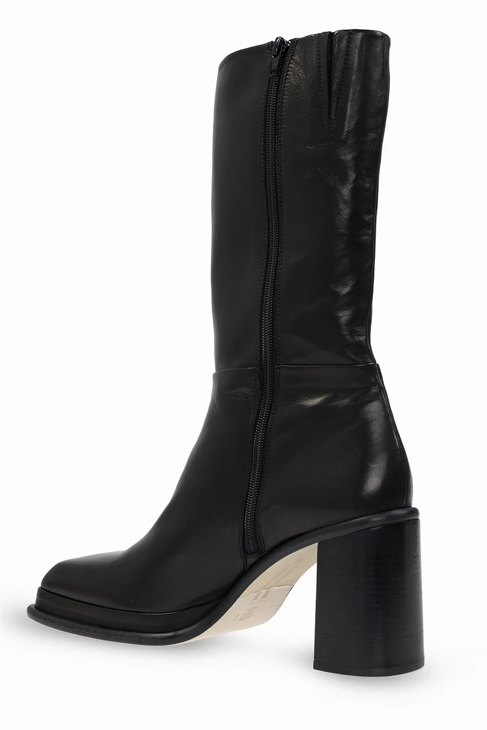 Black ‘Abril’ platform ankle boots from Miista. Crafted from leather, this square toe design features a side zip and beige leather sole.