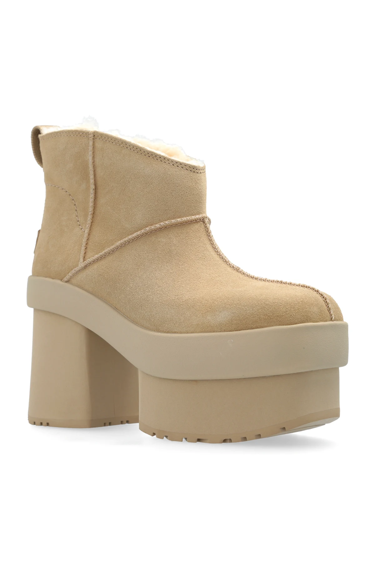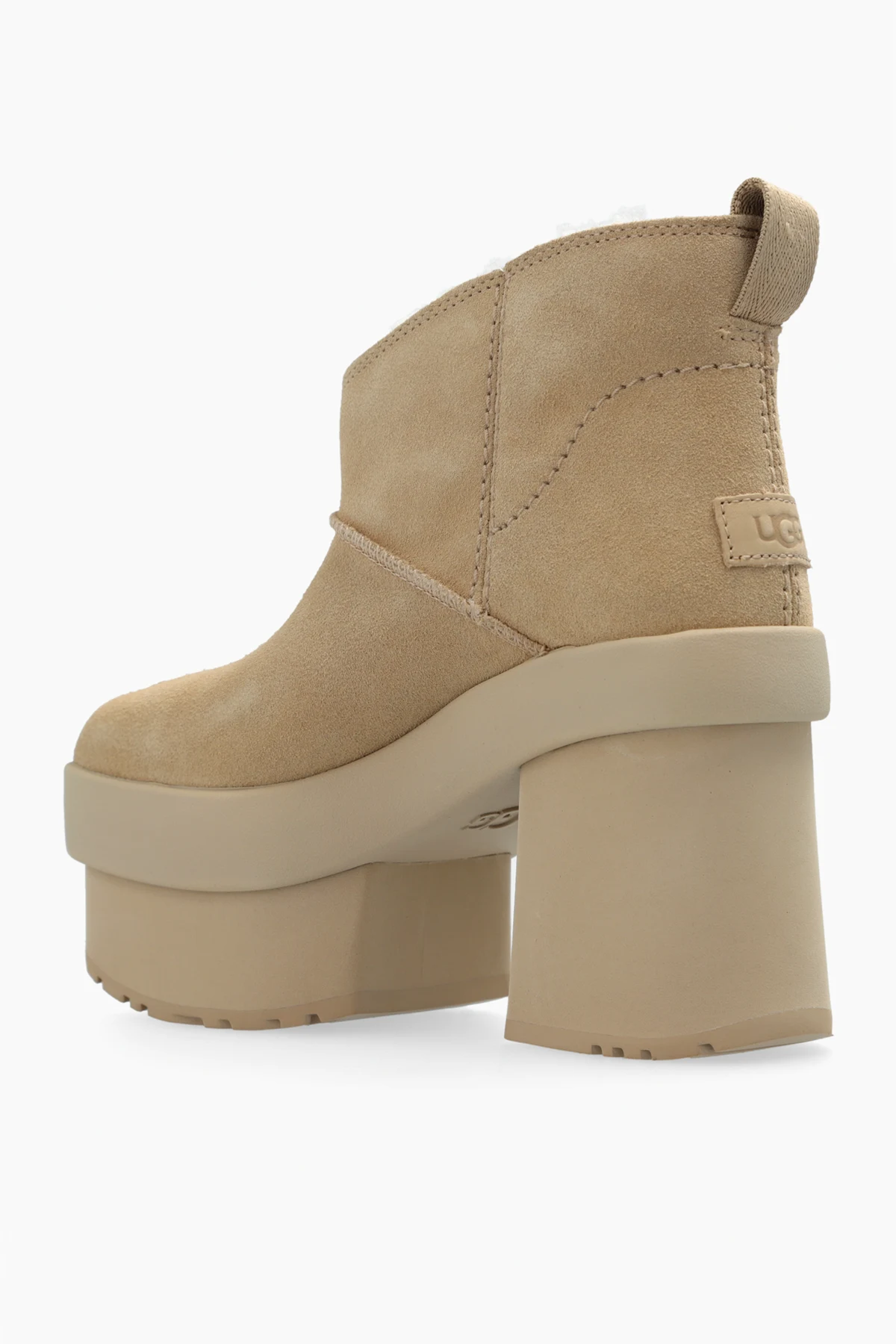 Wir präsentieren die außergewöhnlichen HIGH-HEELED SHOES New Heights Platform vom renommierten Designer UGG . Diese beigen HIGH-HEELED SHOES aus der exklusiven Kollektion zeichnen sich durch ihre massive Form mit hoher Plattform und dickem Absatz aus. Der kurze Schaft, der bis zum Knöchel reicht, die abgerundete Spitze und die dezenten Nähte verleihen ihnen einen unverwechselbaren Charme.