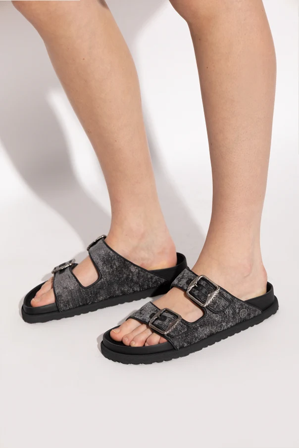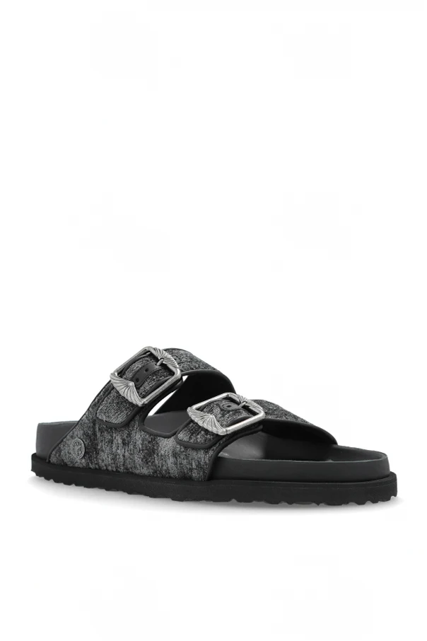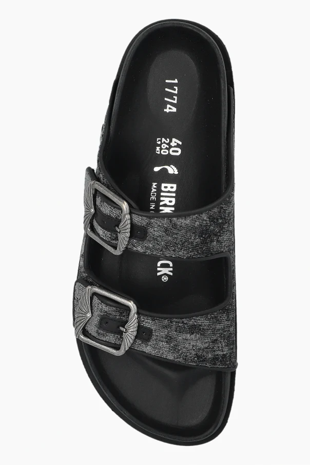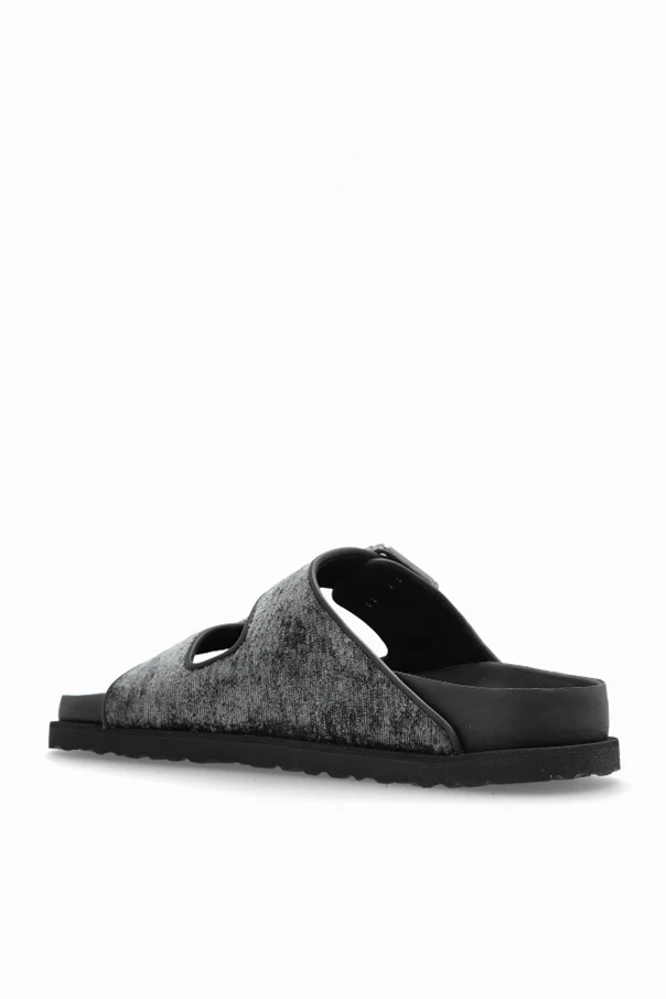 ARIZONA FRENCH PIPING 1774 Pantoletten verkörpern Raffinesse und moderne Eleganz – ein Vorschlag, der mit einem subtilen Melange aus Schwarz und originellem Smoke-Effekt begeistert. Die klassische „Slide”-Form mit zwei breiten Riemen, bezogen mit hochwertigem textilen Material, strahlt zeitlose Schlichtheit und Finesse aus. Gekrönt wird das Ganze durch markante, schmuckvolle Schnallen mit dekorativer Struktur, die einen einzigartigen Akzent setzen.