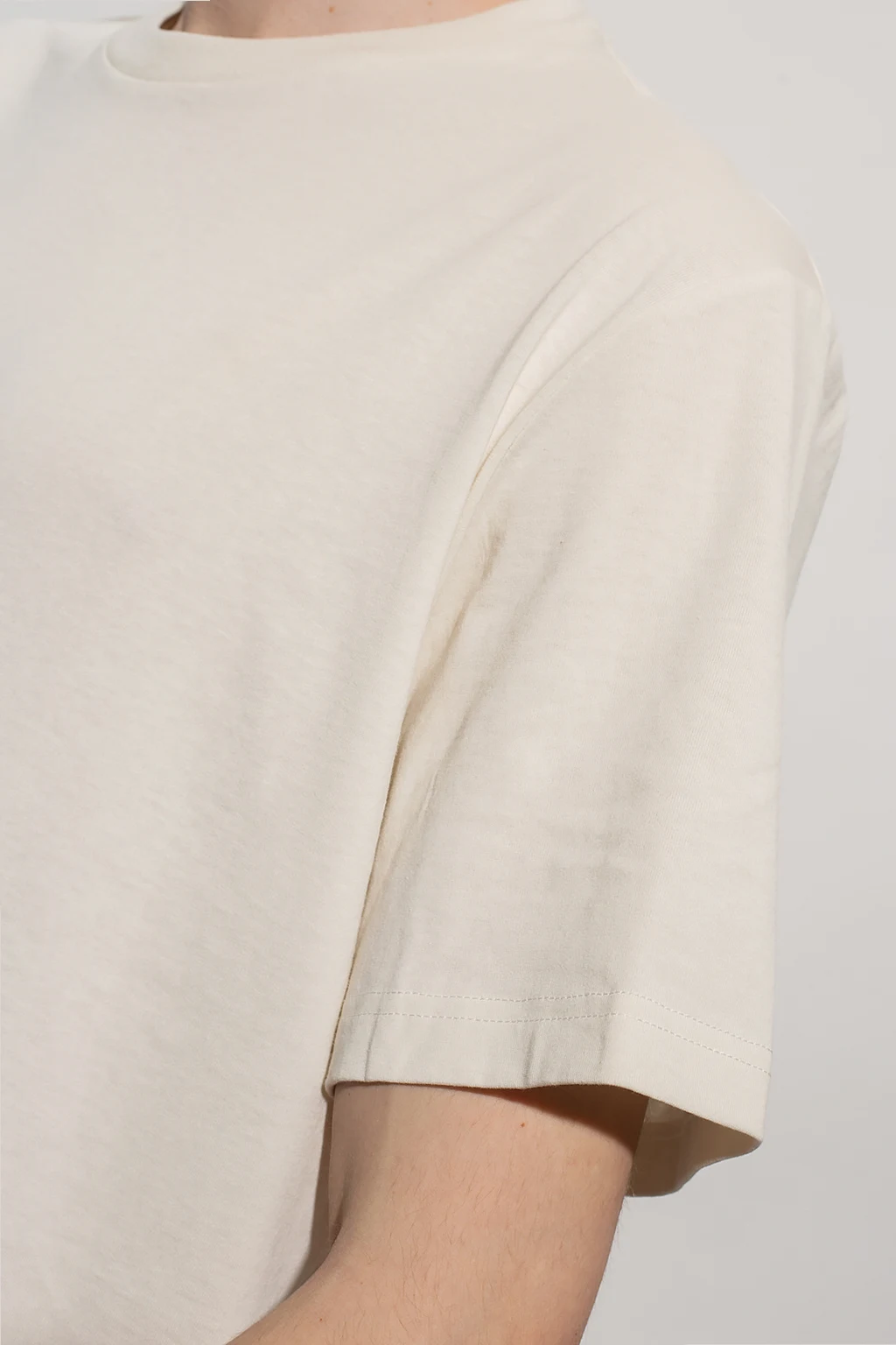 Cream ‘Errigal’ T-shirt from The Row. Made of cotton, this short sleeve design features stitching details at the back and ribbed crew neck.