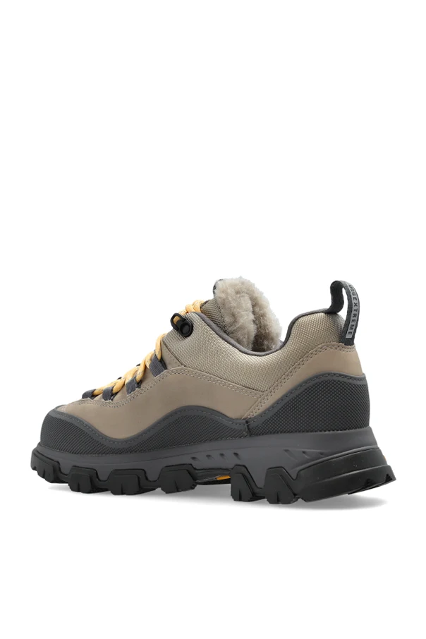 Stiefeletten ‘METROTREK HIKER’ von UGG sind eine raffinierte Kombination aus moderner Funktionalität und dem Erbe australischer Handwerkskunst. Ihr niedriges Profil sowie die massive Trekking-Sohle sorgen für Stabilität und Sicherheit auf jedem Untergrund. Der markante, kontrastreiche Look ergibt sich aus dem harmonischen Zusammenspiel eines beigen Schafts mit dunklen, graphitfarbenen und schwarzen Details sowie den charakteristischen gelben Schnürsenkeln, die den sportlichen Charakter des Schuhs unterstreichen.
